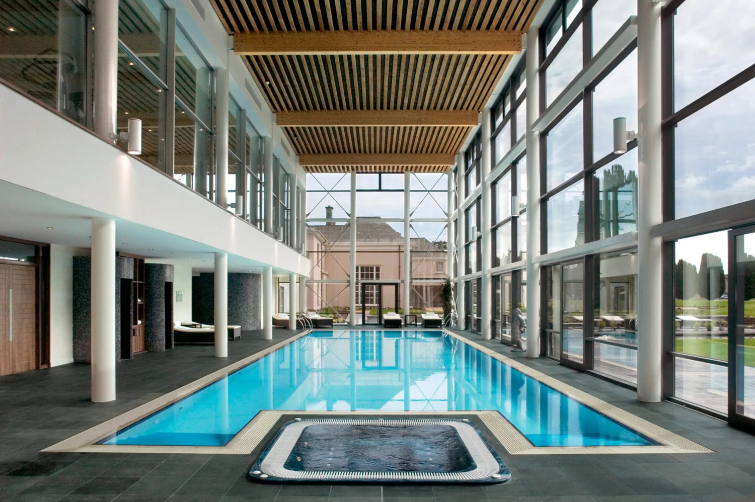 Boasting stunning estate views, the Castlemartyr Resort spa’s glass-fronted pool and Water Room highlight the resort’s beauty. With 10 treatment rooms, a sauna, a steam room, and vitality lounges, it offers indulgent, personalised wellness experiences in serene surroundings.