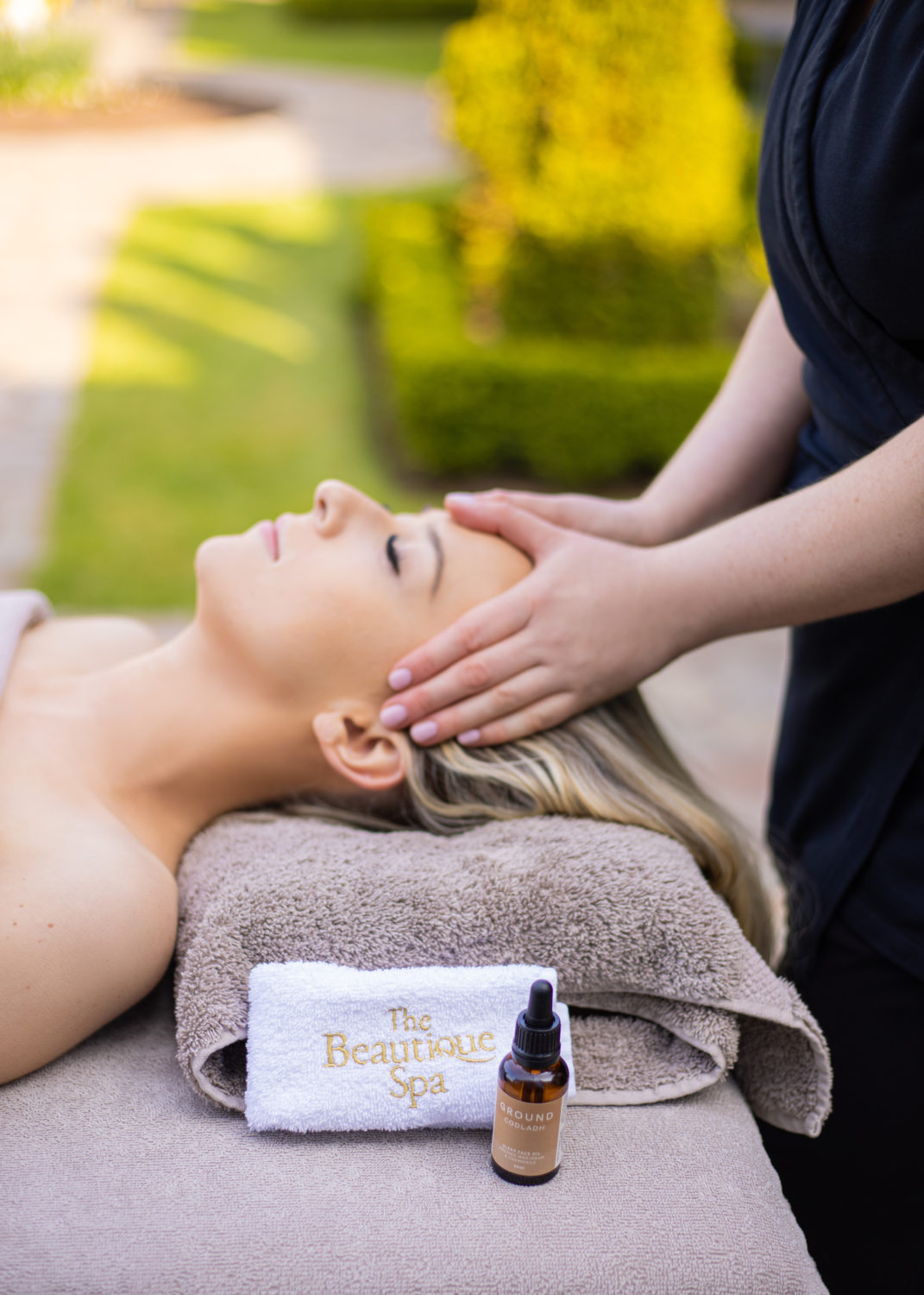 Signature Treatment: Cúram and Folláine — a targeted massage for the back, neck and shoulders, finishing with a soothing face and scalp ritual using massage and gua sha techniques.
