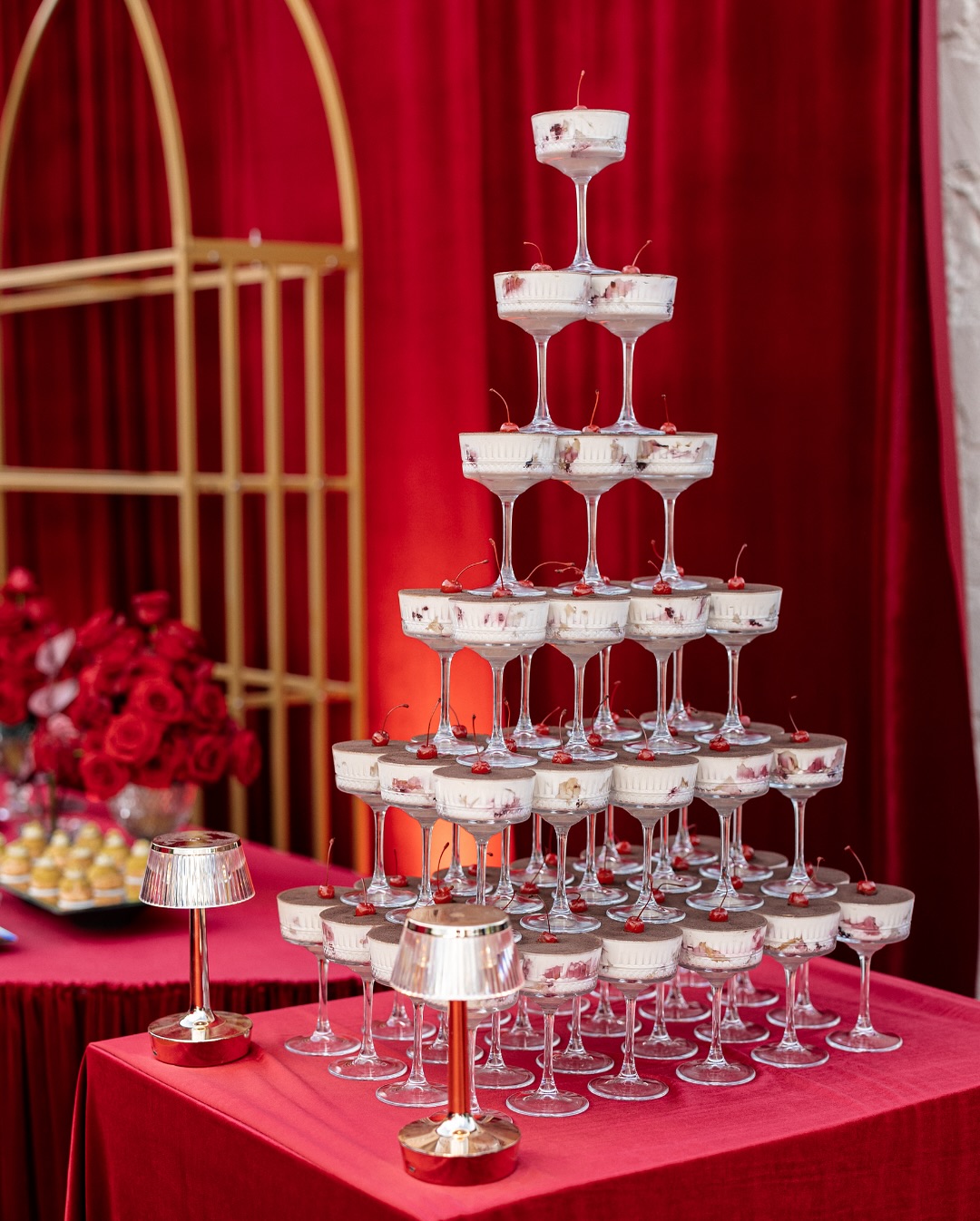 For couples who love a bit of drama, Crimson Canopy delivers in the best way. Deep reds, wine tones and burgundies paired with olive green feel rich, romantic and slightly moody, without ever feeling heavy. This palette really comes into its own in candlelit spaces, historic venues or evening receptions. Think long tables, low lighting, textured florals and fabrics that feel lush and tactile. There’s a sense of intimacy to it that feels very intentional.