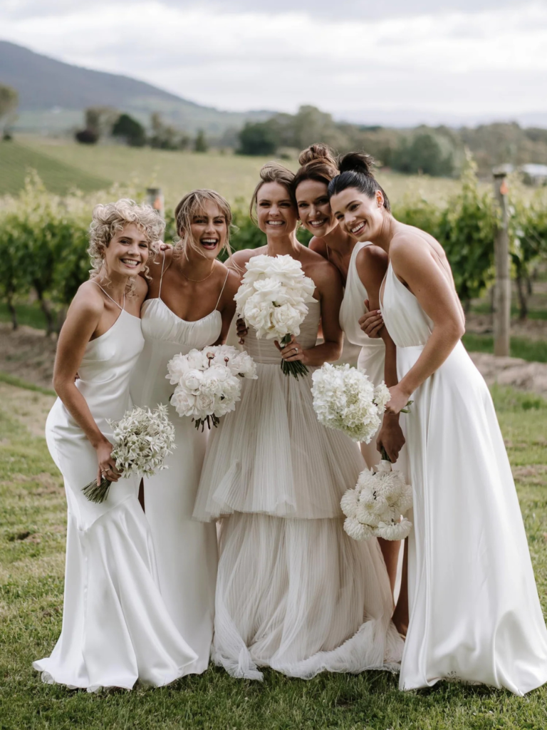 Laura Parkinson PhotographyFor bridesmaids, this shade works particularly well when dresses are mixed and matched, whether that means different silhouettes, fabrics, or subtle tonal variations. Linen, satin or chiffon all sit comfortably together, creating a look that feels intentional but relaxed. It suits bridal parties who want to look polished while still feeling like themselves, and it gives plenty of room to introduce colour through bouquets, jewellery or shoes if you wish.