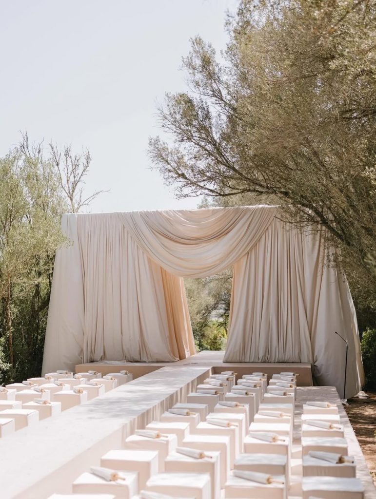 Table linens, soft runners, draped arches, chair covers or ceiling fabrics in Cloud White look natural and unforced, never competing with the space around them. It is especially helpful in venues with strong architectural features, such as timber beams, stone walls, or patterned floors, as it softens the overall look rather than fighting them.