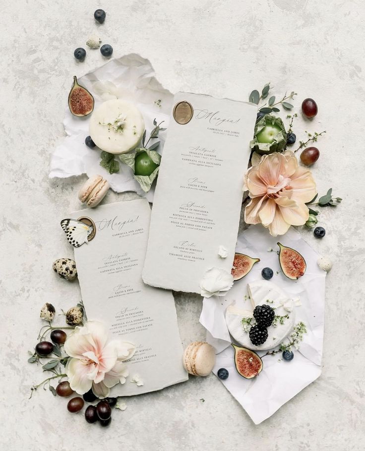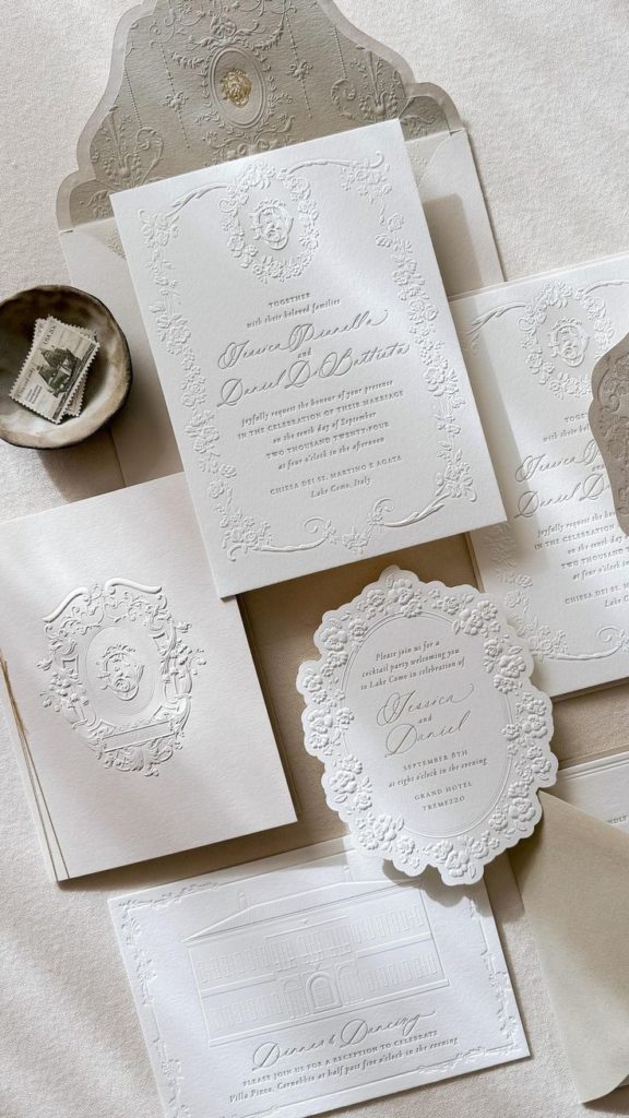 Because the background is so gentle, finishes like calligraphy, embossing, blind lettering, or coloured inks stand out clearly without feeling harsh. Even simple layouts feel elevated. If you want your stationery to feel cohesive from the first save-the-date to the final place card, this approach offers consistency while still allowing your personality to come through.