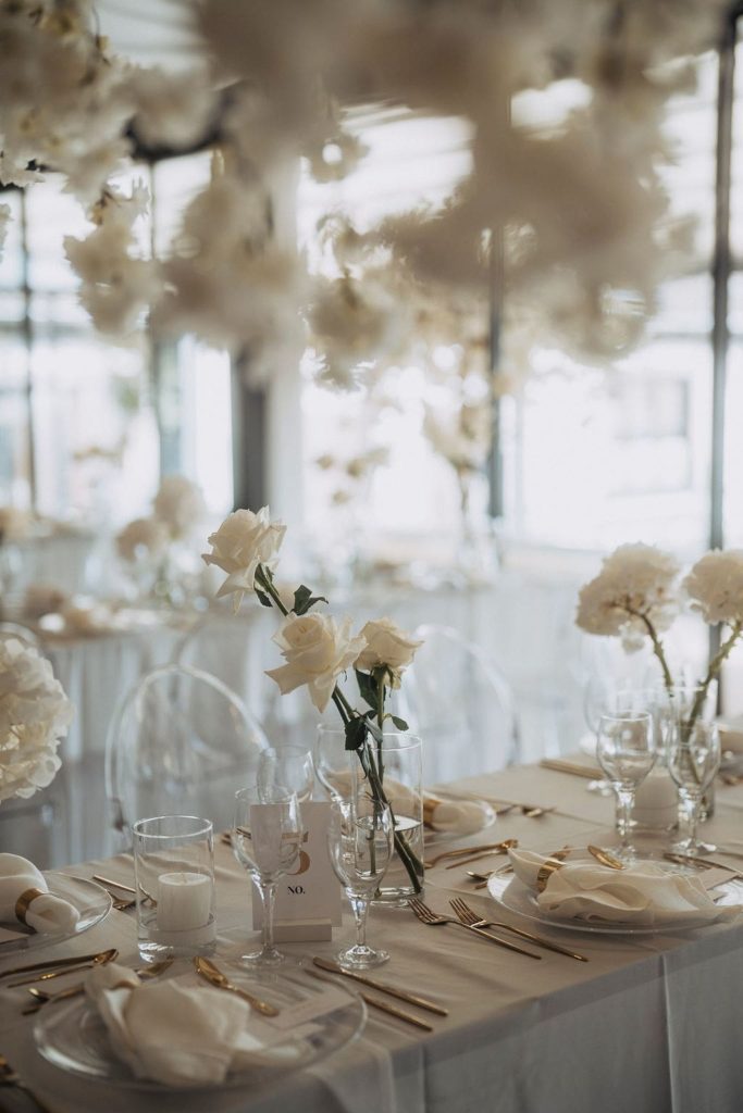 Tess Shannon PhotographyBecause the tone sits in a neutral space, it gives you the freedom to build your palette in a way that feels truly personal. If you love a dreamy, romantic style, pair it with pastel florals and soft textures. If you gravitate toward something richer and more dramatic, it balances deeper tones such as olive, plum or antique gold without being drowned out. Whether your day is taking shape as a cosy barn ceremony or a chic city celebration, Cloud Dancer settles into the environment with ease.