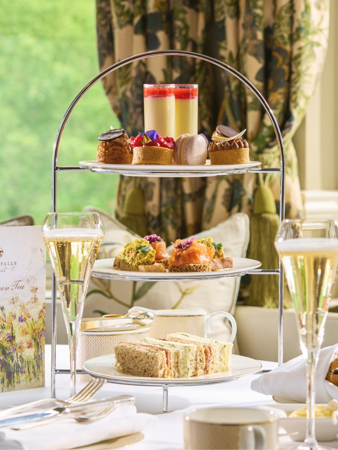 With cascading waterfalls and tranquil woodland surroundings, Sheen Falls Lodge is a dreamy setting for a memorable Mother’s Day treat. Afternoon tea here includes a beautifully curated three-tiered selection of delicate finger sandwiches, handmade pastries, light scones with clotted cream and preserves, and exquisite miniature cakes, all crafted with finesse by their award-winning pastry team.