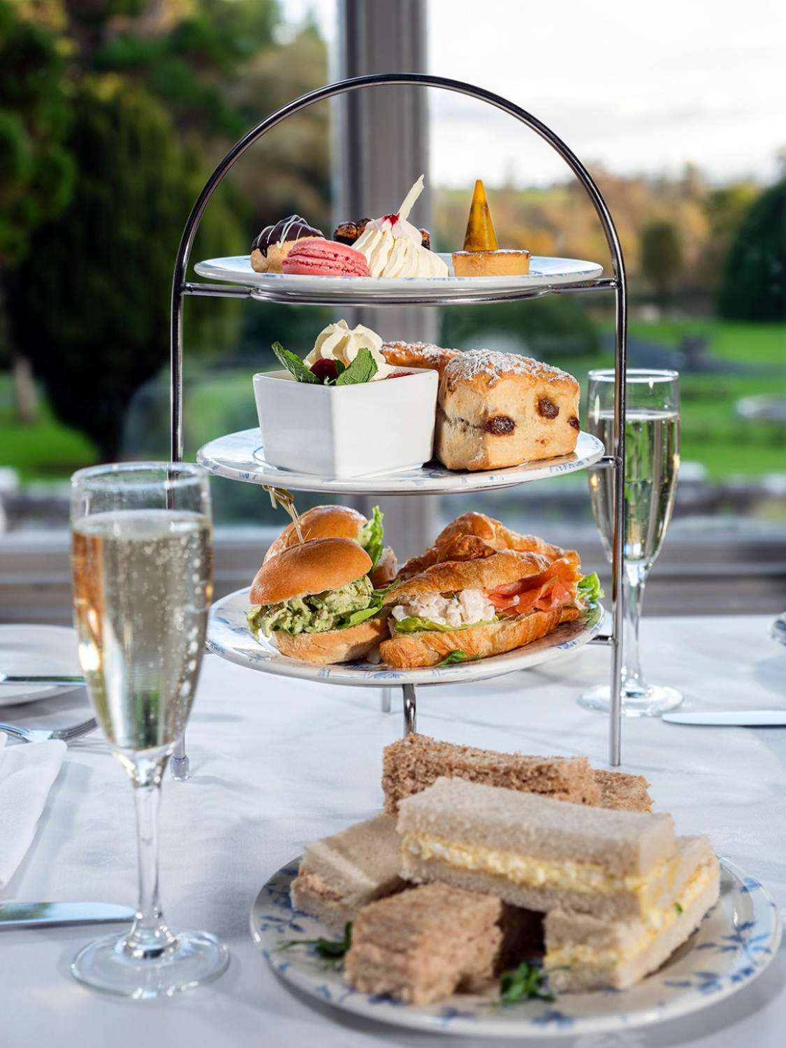 Fota Island Resort delivers beautifully presented afternoon tea in the elegant surroundings of the Fota Restaurant, with finger sandwiches, warm scones and an array of sweet treats, including their Rose and Lychee Choux Buns and Guinness Cheesecake.