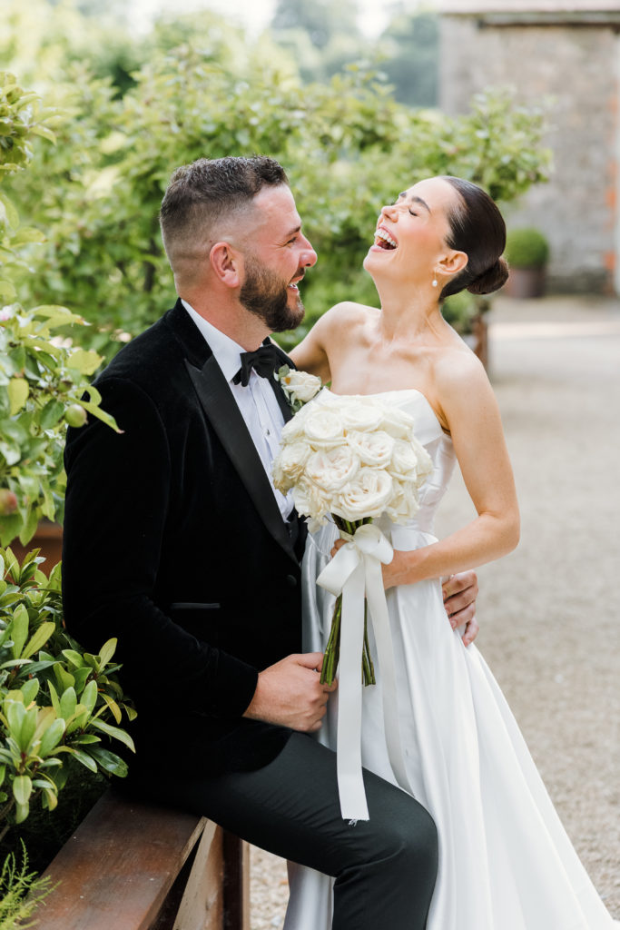 After viewing some castles, hotels and manor houses, the Millhouse had everything the two wanted: the gardens, the river, the forest, the old Georgian-style house and stunning décor, the orangery and the function room. There were different areas to break up the day, from the drinks reception outside to the main reception in the function room and then to the house for the after-party. All of which opened out onto the gardens overlooking the river Boyne and scenic countryside. You could see everyone, no matter where in the house or garden you were, so you didn’t miss out on any of the craic.