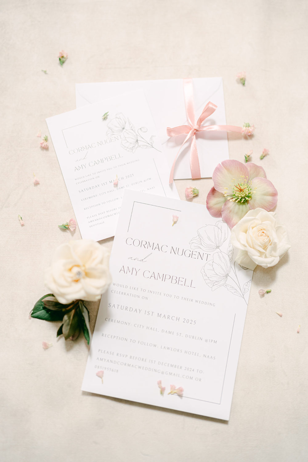 Scent-wise, Cormac wore the ever-classic Creed Aventus (featuring notes of pineapple and a refined, smoky edge), and Amy wore Pivoine Suzhou by Armani Prive (An elegant, light, rose-focused perfume with notes of raspberry and amber).