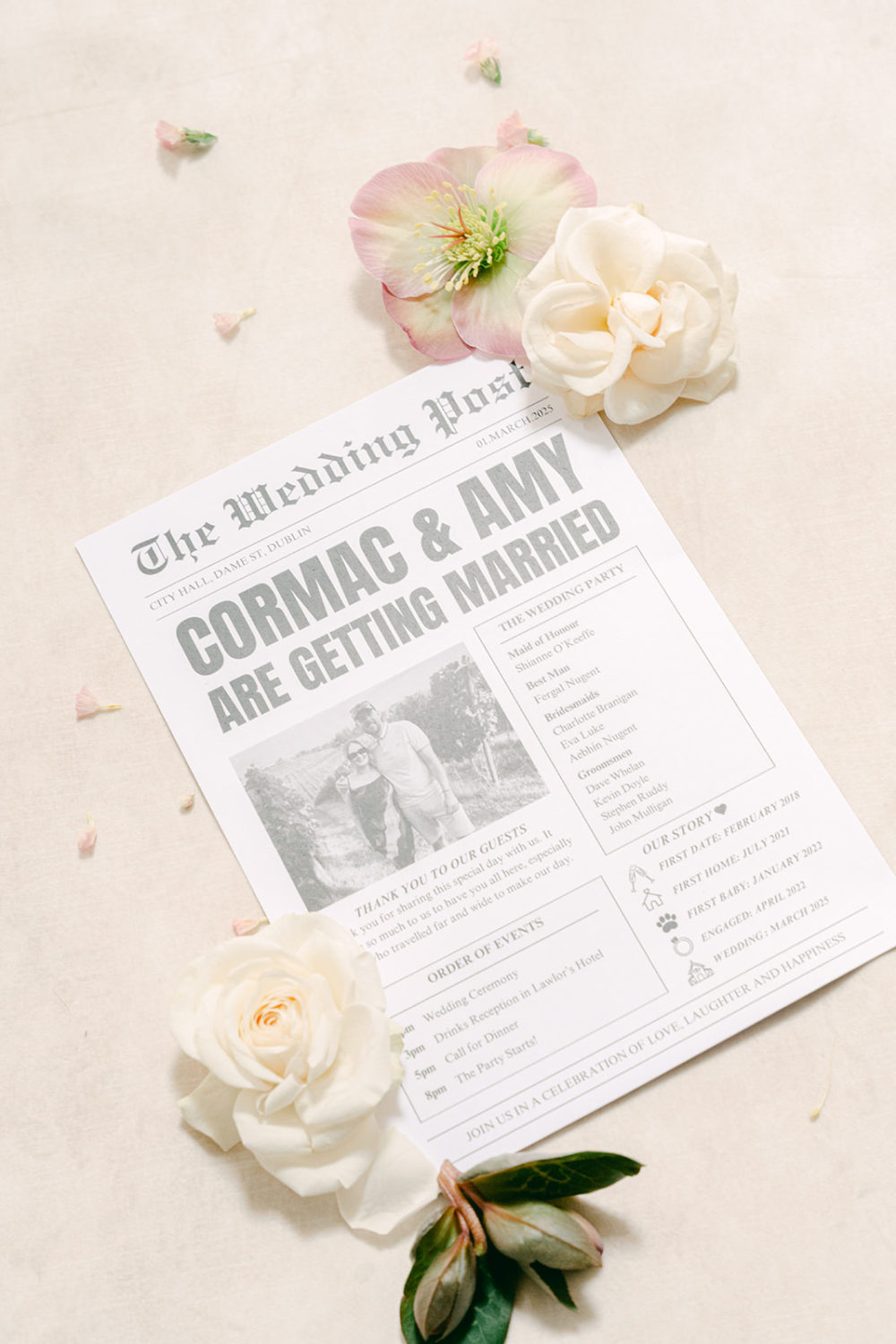 "Cormac was warned for a long time that if he proposed to me and my nails weren't done, the answer would be No. With that in mind, he very thoughtfully set up our bedroom, with tonnes of candles (almost burned the house down), balloons and rose petals on the bed spelling out 'Marry Me Amy', all while I was at my nail appointment. He definitely earned some brownie points for that!"