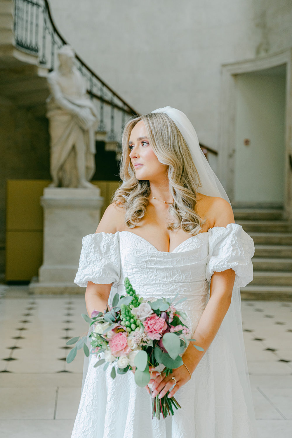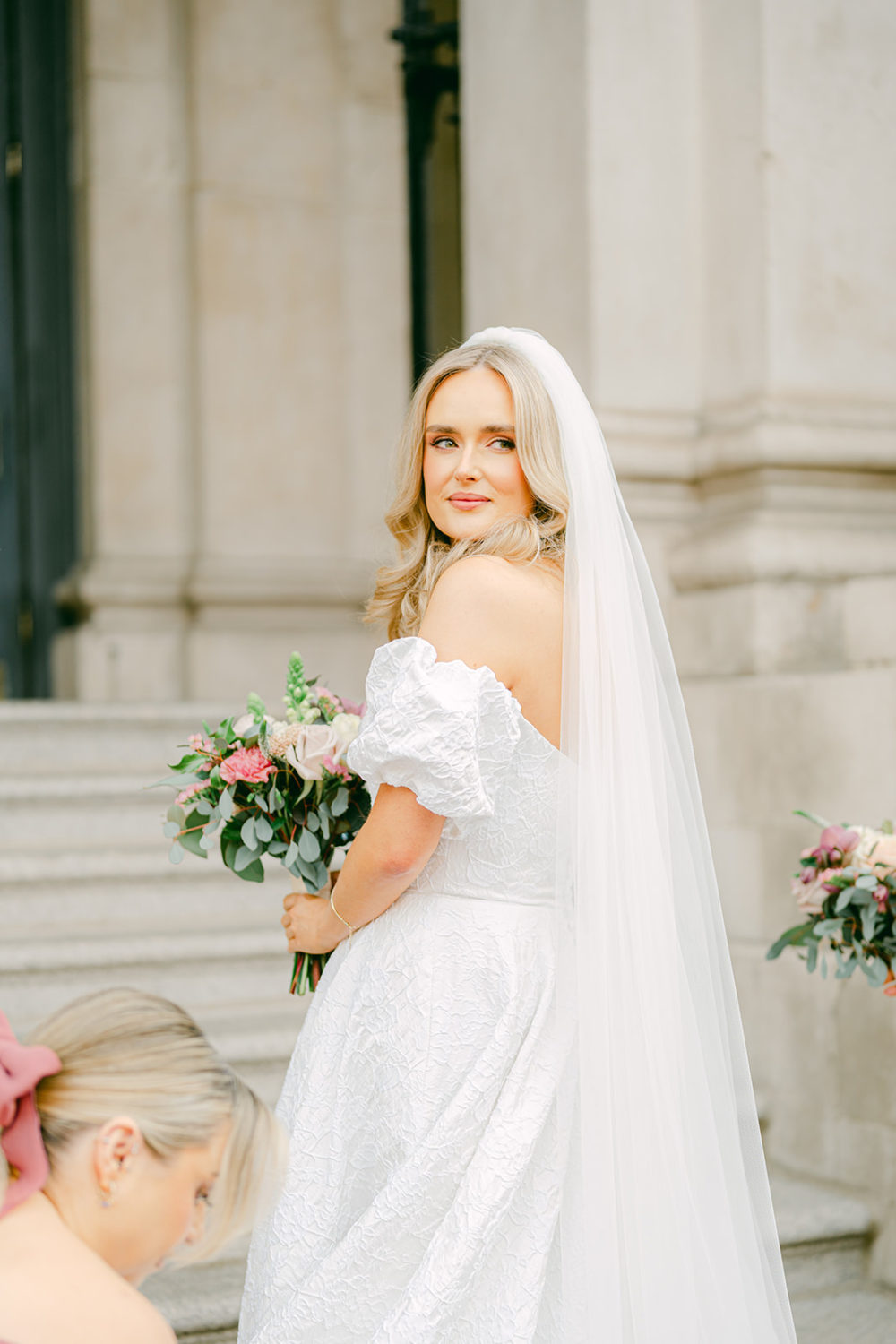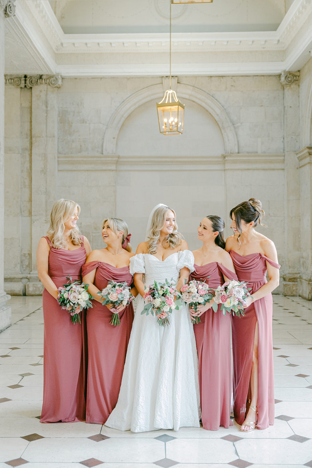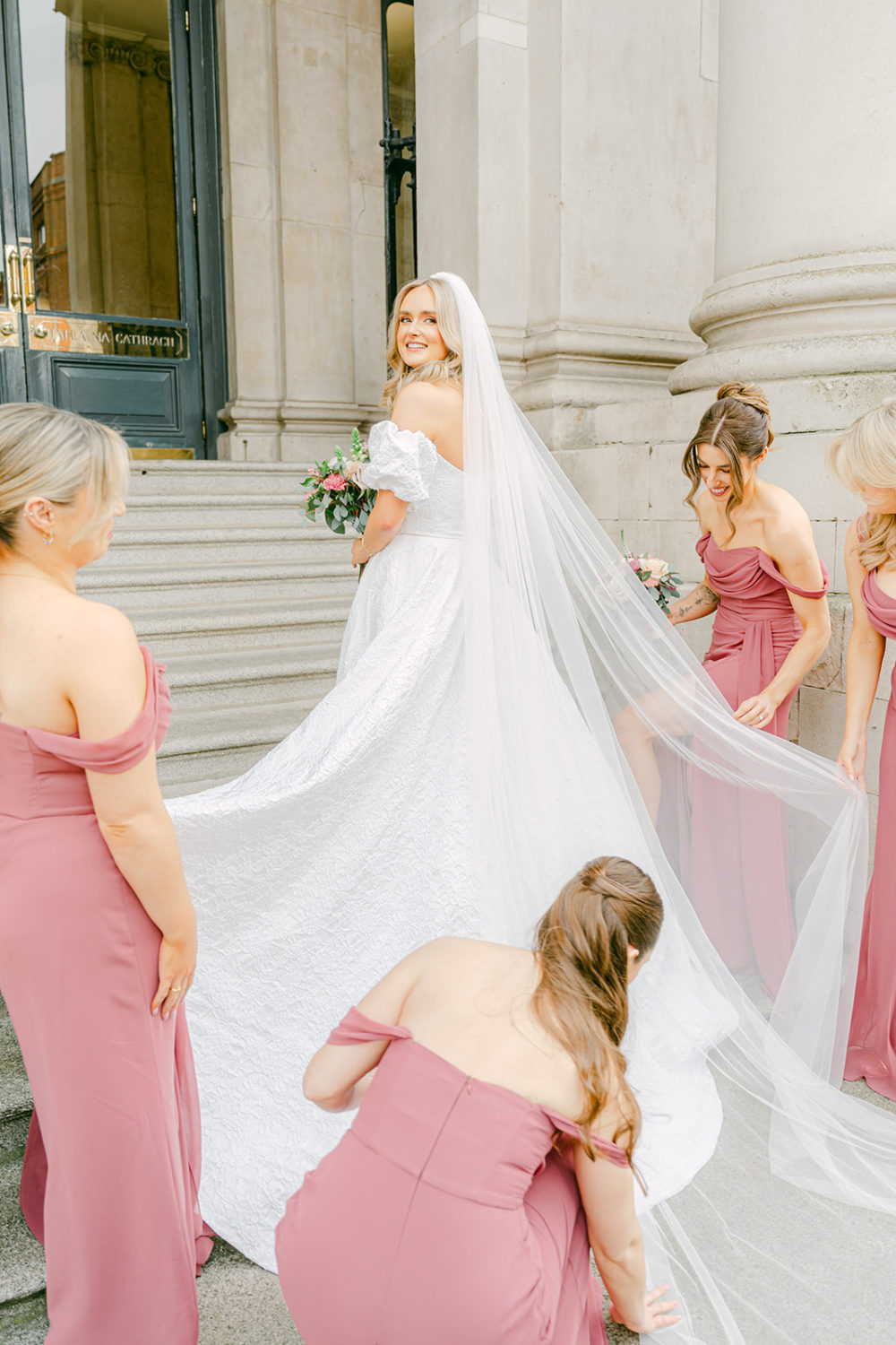One of Dublin's most beautiful 18th-century buildings, City Hall, originally the Royal Exchange, has hosted countless couples who have married under the grand rotunda. A pinnacle of Irish history and architecture, it was the beautiful ceremony venue for the wedding of business analyst Amy Campbell to mortgage manager Cormac Nugent on Saturday, the 1st of March 2025. Captured by Love it Visuals, we're obsessed with every single perfectly pink detail in this city celebration!