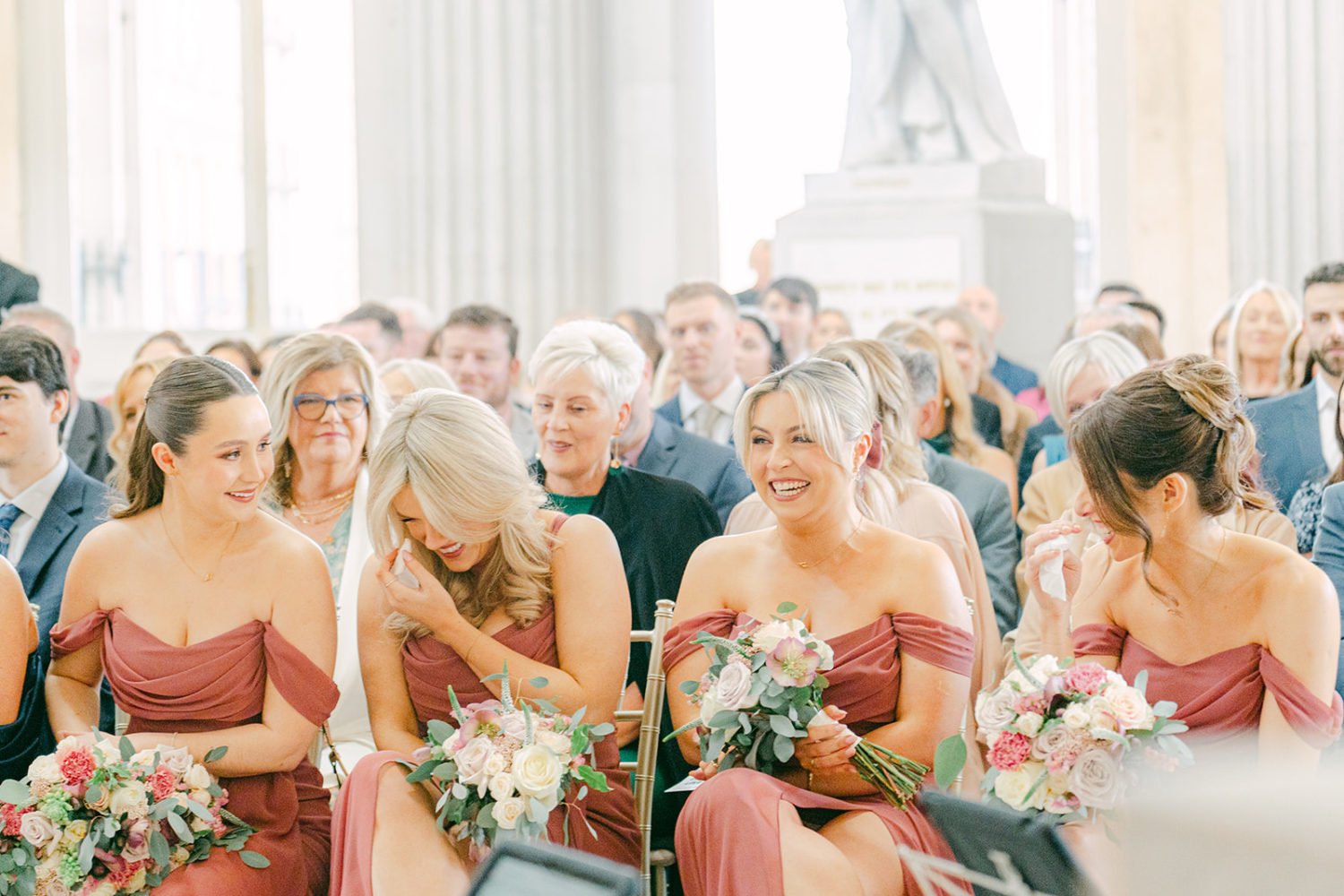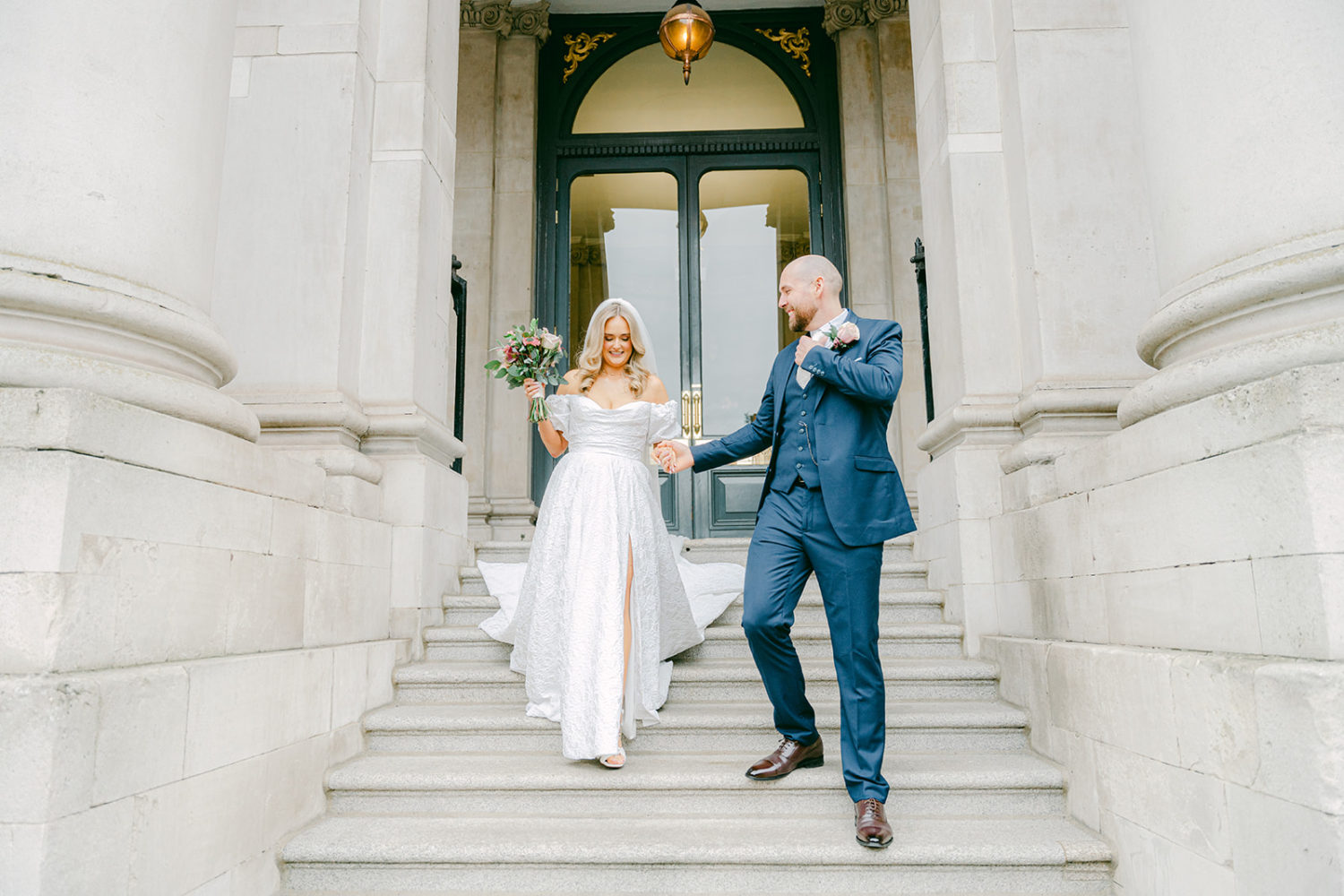 The pair were inspired to choose City Hall as their venue after attending the wedding of Amy's maid of honour, Shianne. "We were engaged at the time, but we hadn't started looking at venues, and I just knew then it had to be City Hall. The Dublin City backdrop, once the doors open and you're walking down the aisle, is just amazing."