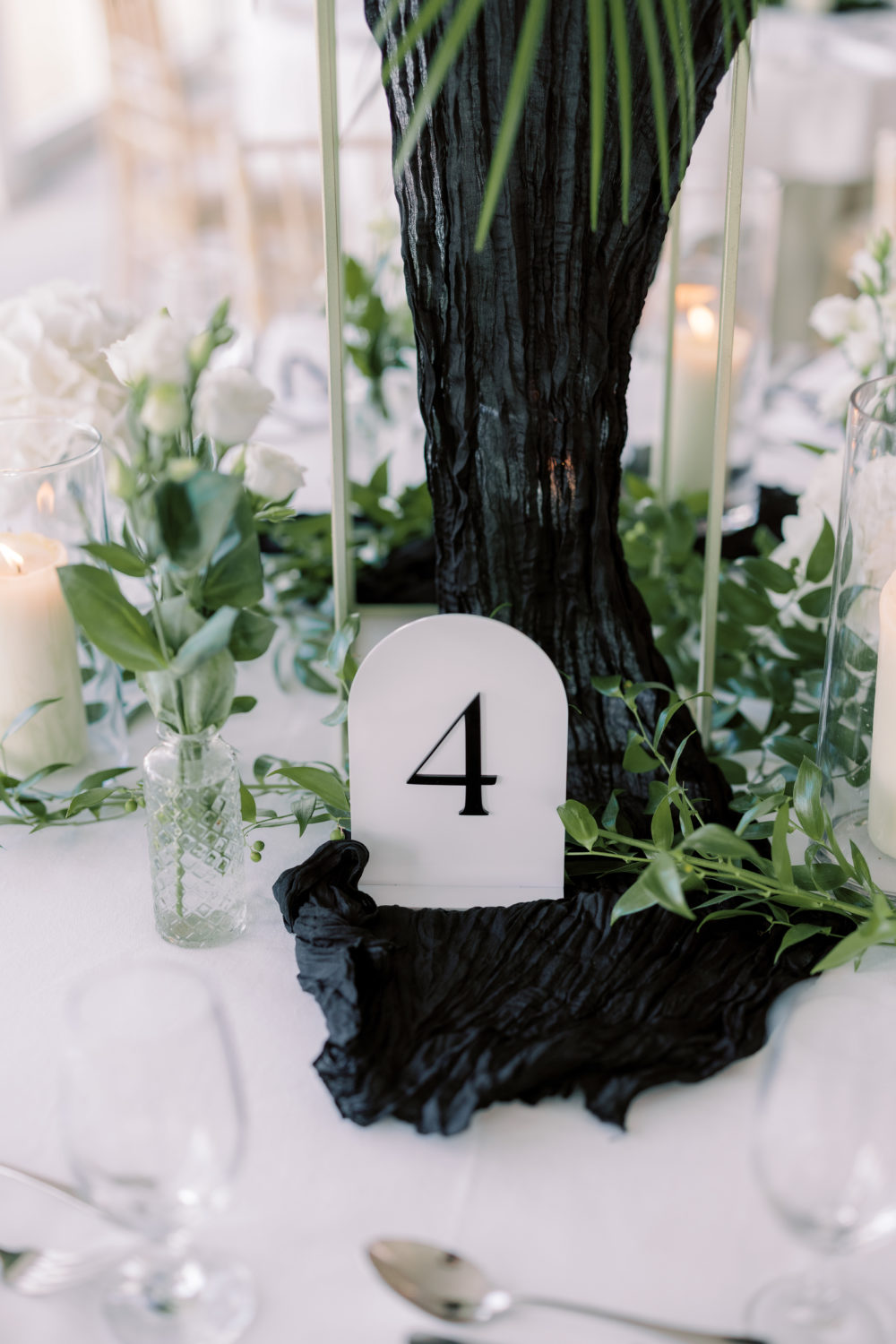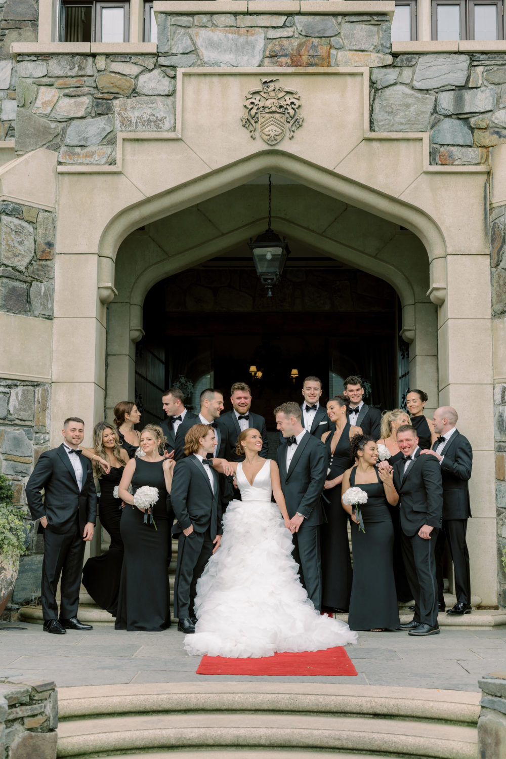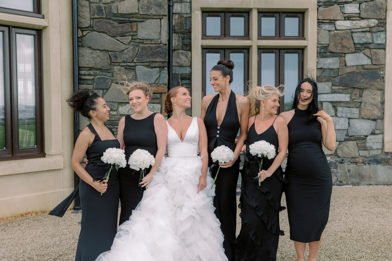 Her bridesmaids included her three sisters-in-law, Matthew's twin sister Julia, his step-sister Paige, and Cara's sister-in-law Emily, along with her brother’s girlfriend Saffia, and three closest friends—Kristina, Nikki, and Lauren. "I had all of my bridesmaids choose their own dresses, with only one requirement: they had to be floor-length black gowns. I wanted everyone to feel beautiful and confident on their wedding day. Their dresses were purchased from various places, including Meshki, Odd Muse London, Revolve, and L'Elite Bridal Boutique. They all looked stunning!"