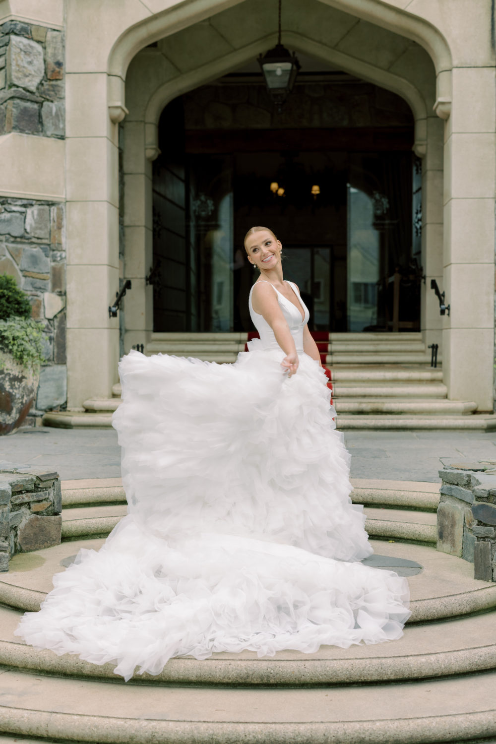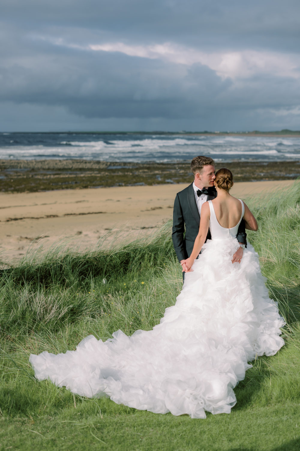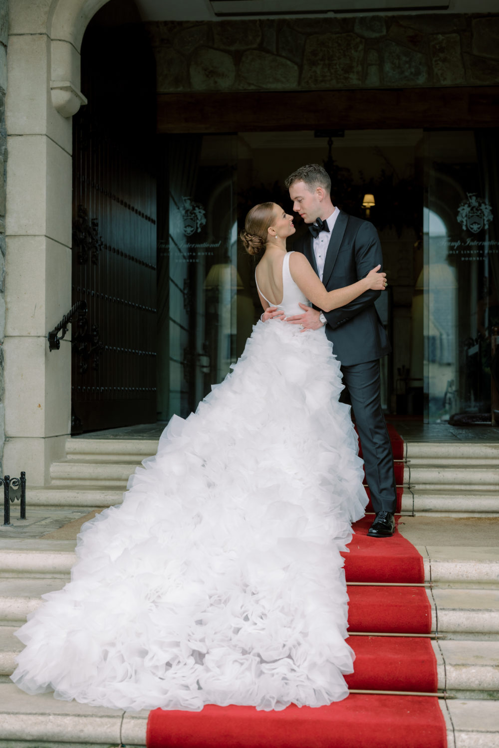 Cara always knew that she wanted a dramatic wedding gown—that’s just her style! And once they chose Doonbeg as the venue, she knew the dress had some high expectations to match its stunning beauty. "My dress was completely custom. It was a blend of the top from one dress, the bottom from another, and the skirt from yet another. The designer worked closely with me to ensure it fit perfectly, and I had no complaints. It was truly my dream dress, everything I had envisioned and more."
