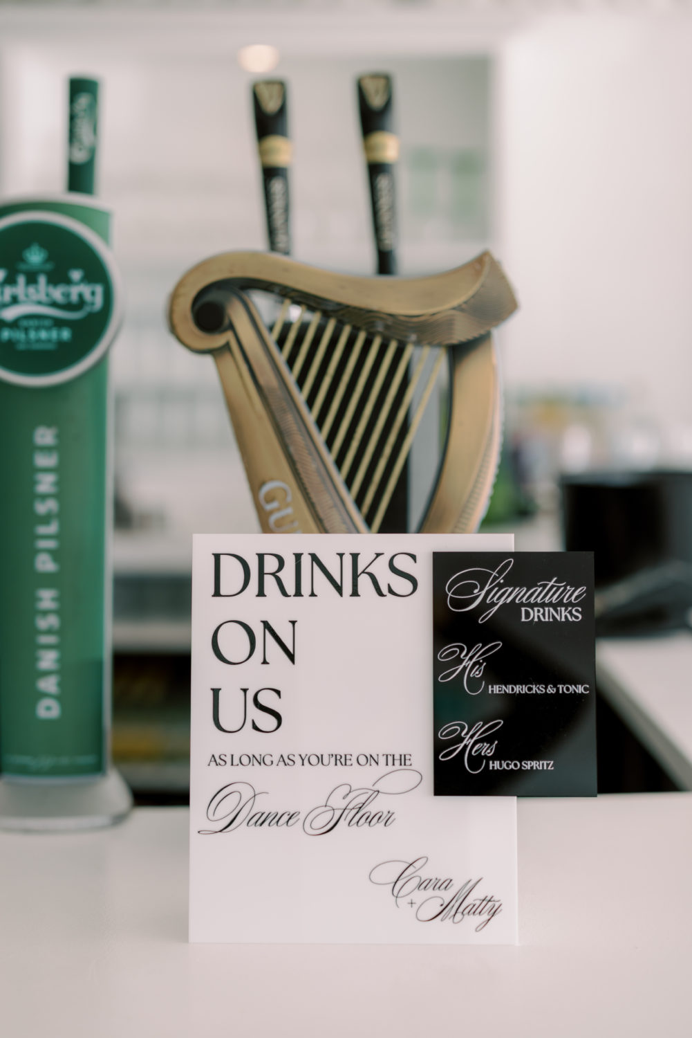 In a more American fashion, the couple chose to have a DJ for the entire reception and cocktail hour. They also hired a trad band to perform during the cocktail hour to bring that authentic Irish feel. "DJ Eoghan O'Sullivan was incredible—I couldn’t recommend him more. He listened to what we wanted, added his own touch to the music, and even had Matthew and me up on the DJ booth to play a song. It was truly a memorable moment and one of our favourites from the wedding weekend."