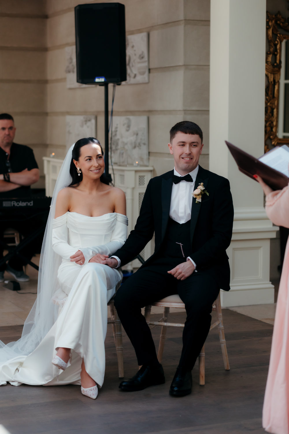 The pair found their venue while searching on Pinterest for 'wedding venues with orangeries in Ireland'. Tankardstown House in Slane appeared straight away, and they fell in love immediately. Visiting in person only confirmed it. Clare’s grandfather, Dan, was born and raised in Co. Meath, so being married so close to that connection felt quietly sentimental.