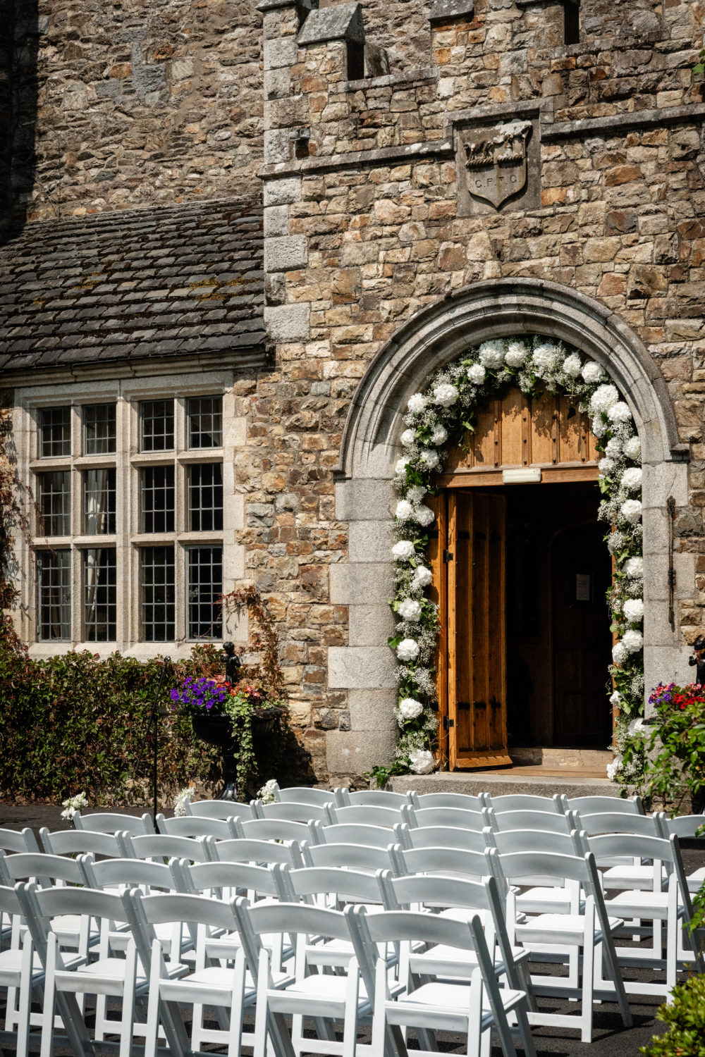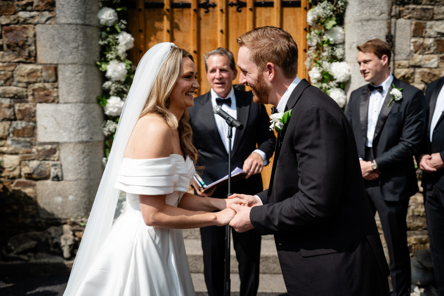 "The ceremony was, surprisingly, outside! We ended up with a beautiful day, which we weren't counting on, and were able to hold both the ceremony and the cocktail hour outside before we headed into the Castle for dinner. We did personalised vows, which were definitely the most special part of the ceremony. I’ve written Zach a love note every day for the past 5+ years of our relationship, and I was able to weave several love notes into my vows. It was a really special moment. By the end of it I think everyone including Zach and I needed a tissue. A lot of our grown male attendees approached me after to say the vows had made them cry, which was equally touching and hilarious."