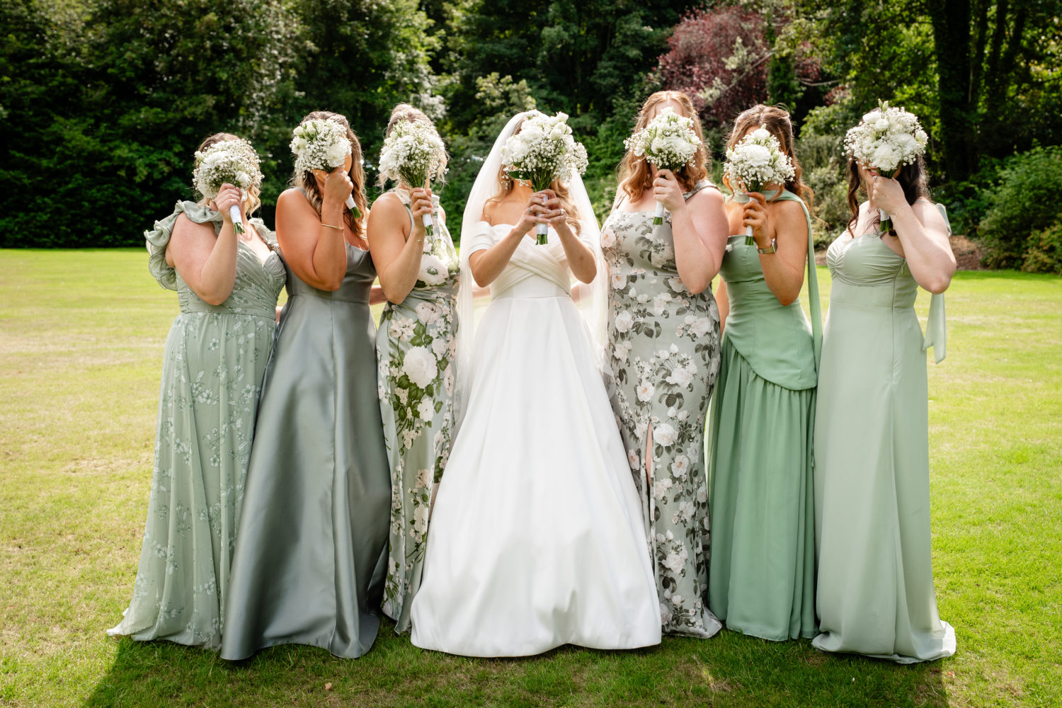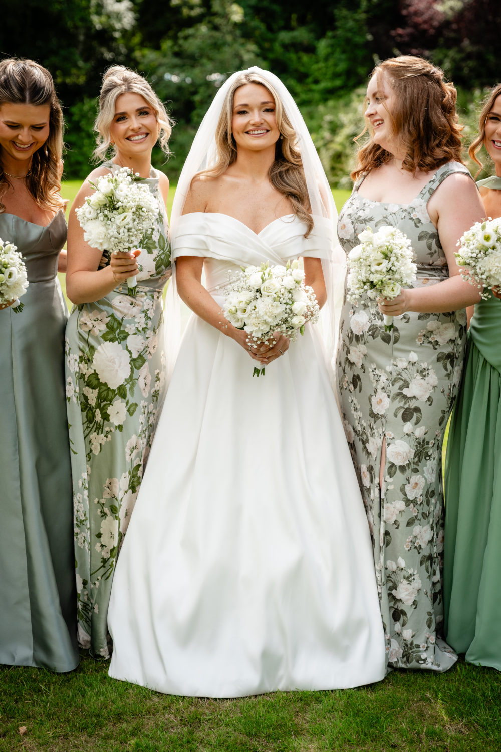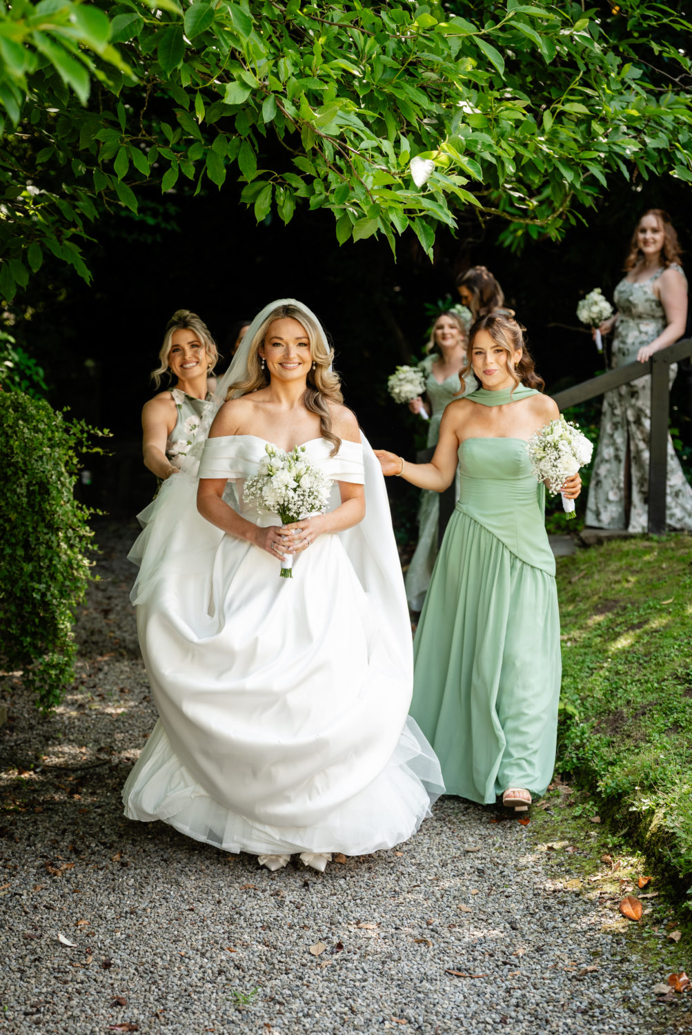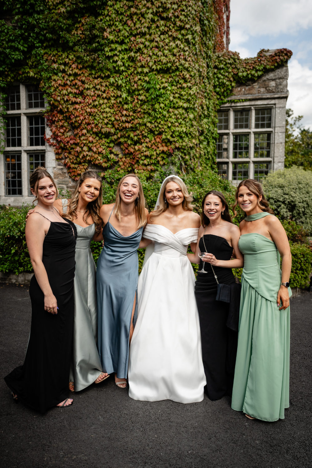 Fiona had six bridesmaids in her bridal party: her sister, her now sister-in-law, and four of her close friends. "I went with a sage green colour palette because I think it suits everyone, and let the girls pick whatever they felt best in. My priority was that everyone felt really beautiful and comfortable on the day, in styles that suited them best. We ended up with a gorgeous mix of dresses, and everyone looked incredible."