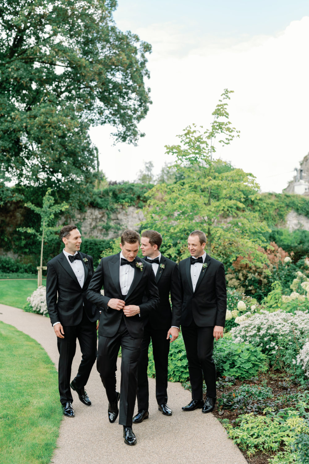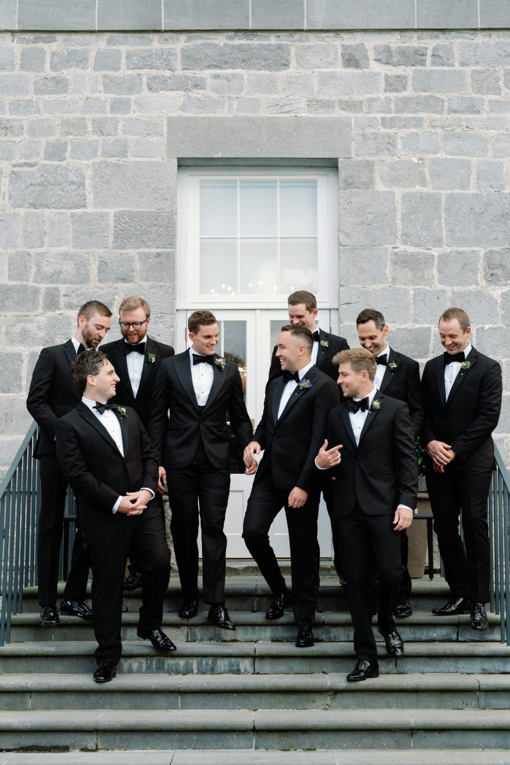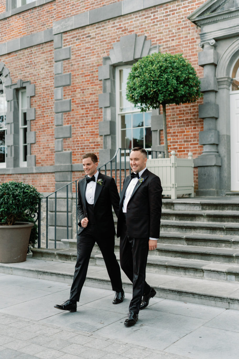 "We both wanted to go for a black tie for the wedding party and guests. For our tuxedos, we went to Henry Dixon at Paul Henry Tailoring in Dublin. For us, this was one of the best decisions. Henry and his team are incredible tailors and guided us from start to finish on styles, cuts, and colours. We went for a classic look that we felt wouldn’t date or that we wouldn’t regret when looking back at photos in 20 years! Each tuxedo was custom-made by Henry’s team from scratch. Seeing everything come together in the morning felt incredibly special. We’ve recommended Henry to all and sundry looking for a wedding suit."