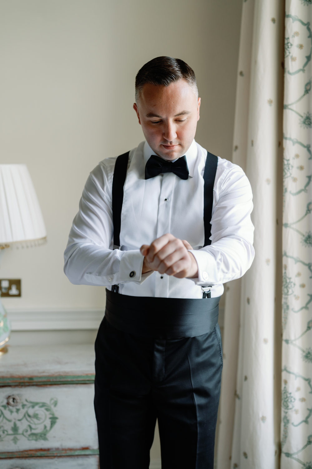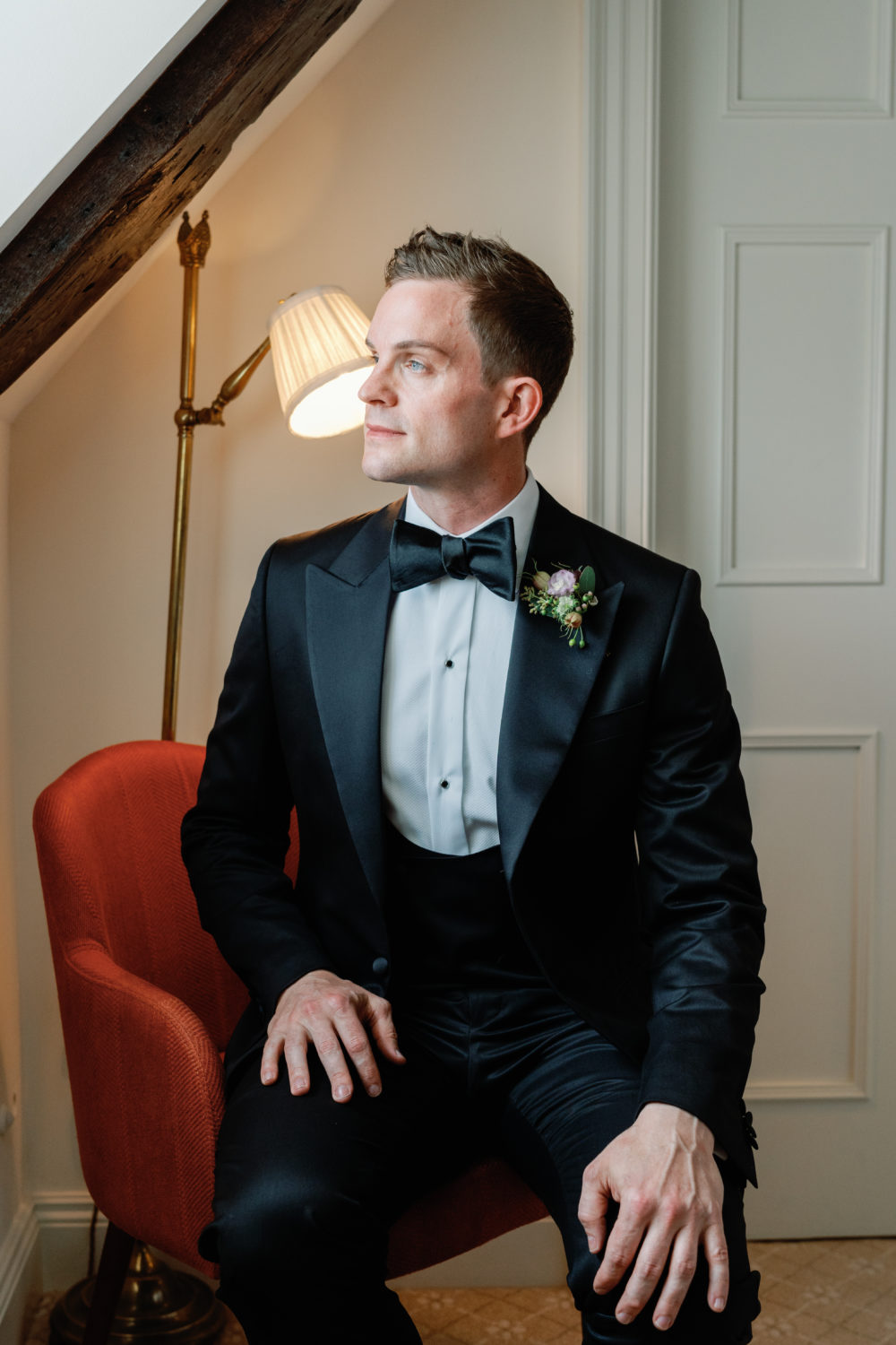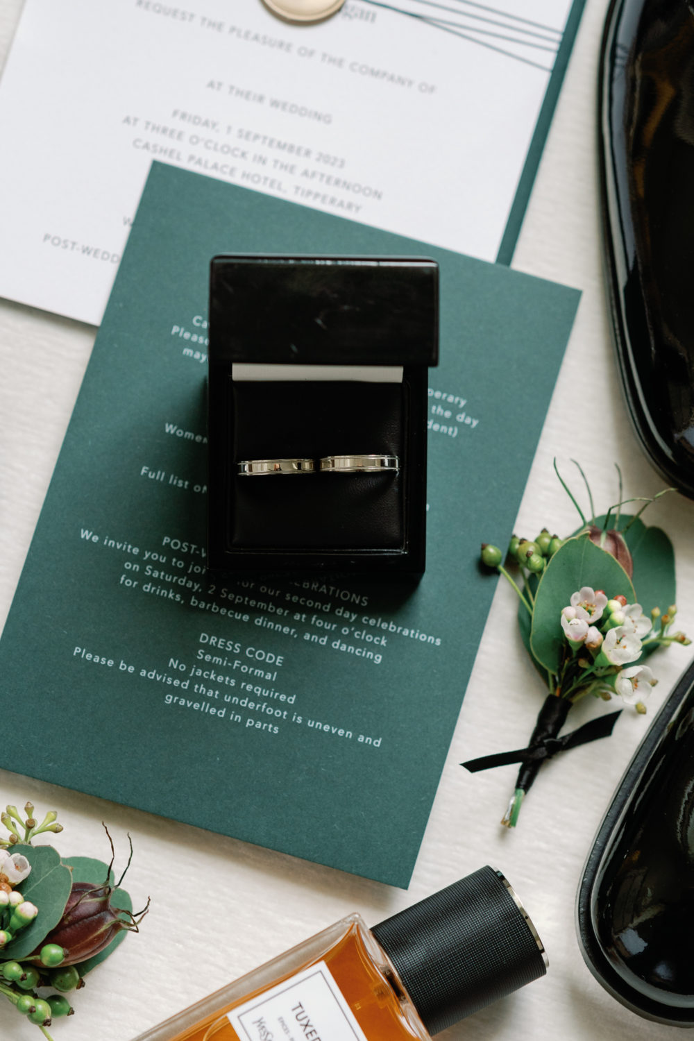 "We both wanted to go for a black tie for the wedding party and guests. For our tuxedos, we went to Henry Dixon at Paul Henry Tailoring in Dublin. For us, this was one of the best decisions. Henry and his team are incredible tailors and guided us from start to finish on styles, cuts, and colours. We went for a classic look that we felt wouldn’t date or that we wouldn’t regret when looking back at photos in 20 years! Each tuxedo was custom-made by Henry’s team from scratch. Seeing everything come together in the morning felt incredibly special. We’ve recommended Henry to all and sundry looking for a wedding suit."