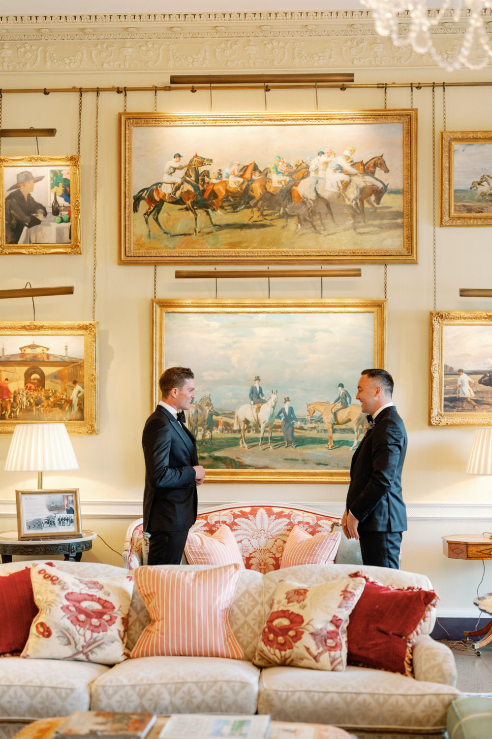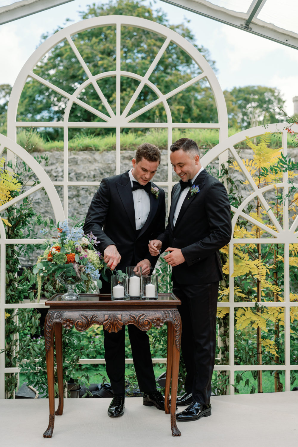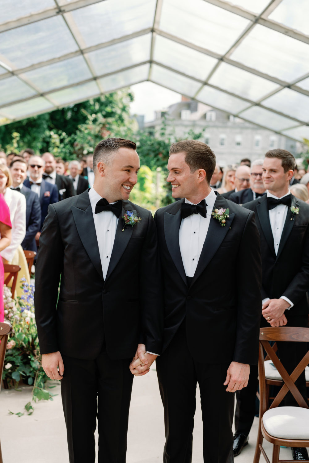 For Hugh’s 30th birthday, the pair visited Cashel Palace without any intention of finding a wedding venue. The hotel had only recently reopened, so they didn’t know much about it. "During our stay, we met the manager and events planner, who shared their vision for weddings at the venue. At the time, Cashel Palace was just beginning to host events and was wonderfully open to creative ideas." The more the guys explored, the more they fell in love with the venue, the staff, and the atmosphere. It had this calm elegance that made everything feel welcoming rather than formal. When they discovered they had a date available—September 1, 2023, their fifth anniversary—it felt like fate.