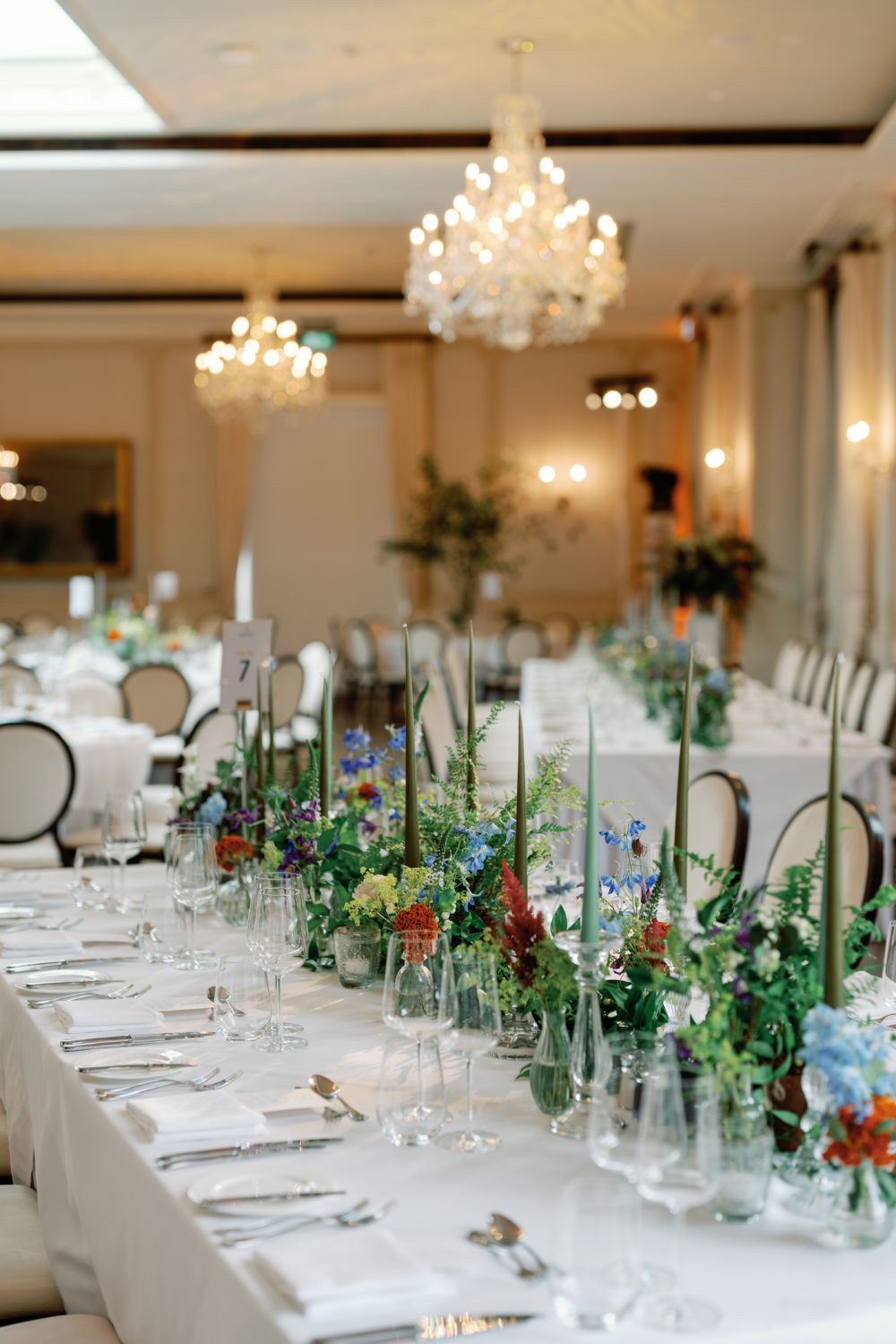 Located in the heart of Ireland, Cashel Palace Hotel is one of Ireland's most luxurious five-star hotels. Meticulously restored from its 1732 beginnings, the manor house was a fabulous backdrop for the wedding of entrepreneur Hugh O’Flanagan to lawyer Gareth Dunne on September 1st 2023. Featured in the Spring issue of SOCIAL & PERSONAL Weddings and shot by Under the Veil, there's only one word to accurately describe the floral styling by The Garden in this late summer wedding, and it's sumptuous!