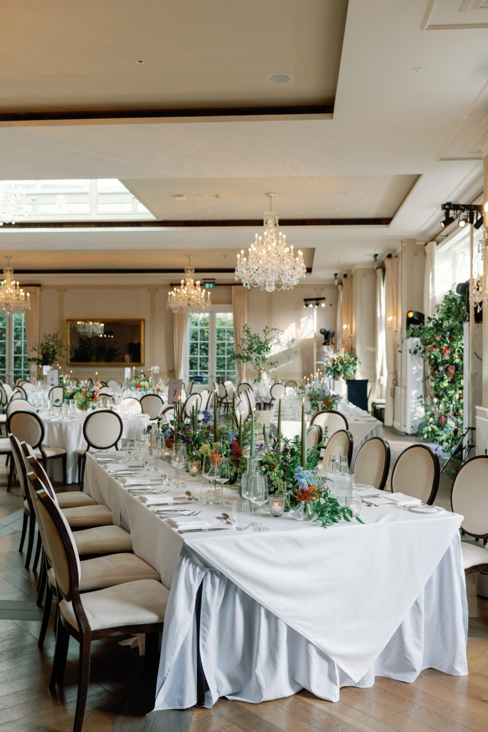 "Our ceremony took place on the beautiful grounds of Cashel Palace, and we poured our hearts into making it deeply personal. Our dear friend Cormac officiated and did an incredible job. The Dublin Gospel Choir filled the air with soulful music, setting the perfect tone. We added meaningful touches throughout: our sisters walked us up the aisle, and our mothers wrote heartfelt letters that they read aloud during the ceremony. Friends from different chapters of our lives shared short, special moments that reflected the bonds we cherish. It was unforgettable—a celebration of love we’ve listened back to countless times. We were absolutely blown away by Mark Grehan’s floral arrangements throughout the orangery; it felt like walking into our own private botanical gardens and set the scene perfectly for our walk down the aisle together."