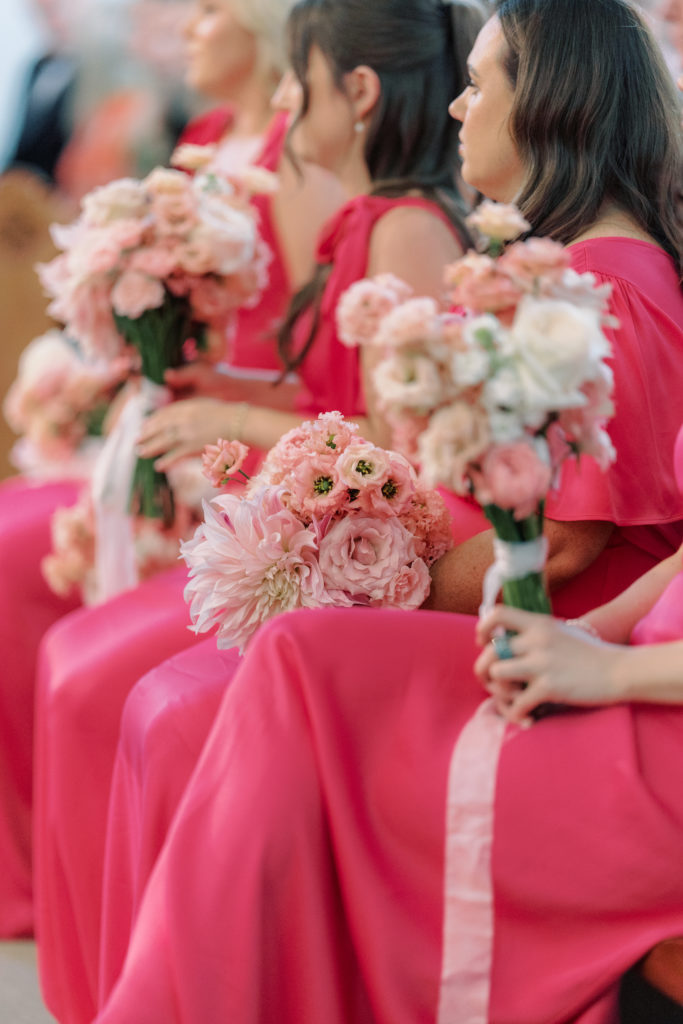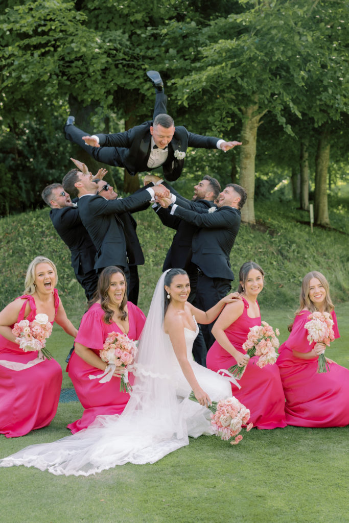 For her bridal party, Kate had her two sisters, Eva & Amy, and three best friends, Lucy, Cristín, and Jade, by her side. "The dresses were chosen from Maids to Measure. I knew I wanted something fun, pink and vibrant." Each bridesmaid chose their own dress silhouette, as Kate wanted to make sure they felt comfortable in whatever they wore, and we certainly think it paid off!