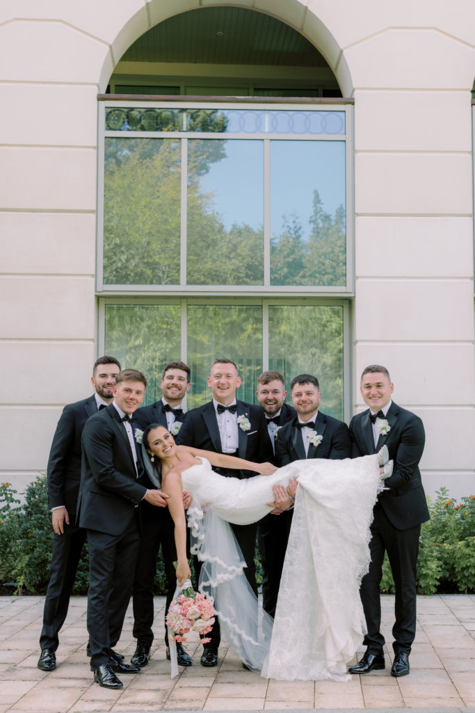 "Since Jamie had six groomsmen, we wanted to get all the tuxes together, so we went to Protocol for Men on Dawson Street. They were brilliant to work with."