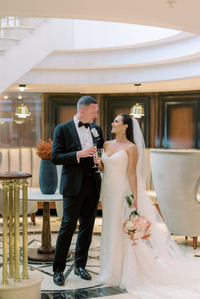 A grand Palladian-style resort nestled amongst the Wicklow Mountains, Powerscourt Hotel offers an unrivalled 5-star experience and was the perfect venue for the wedding of account manager Kate Bennett to audit senior manager Jamie Campbell on the 9th of August 2025. Captured by Christina Brosnan Photography, it felt only fitting that the place where their paths first quietly crossed would become the place where their future officially began.