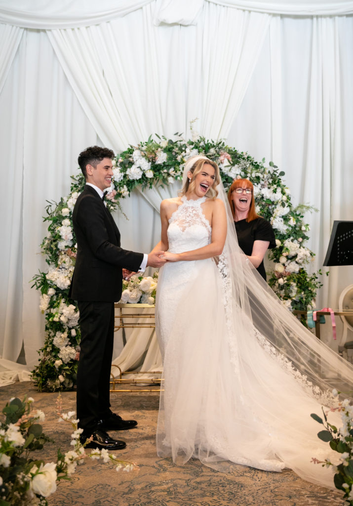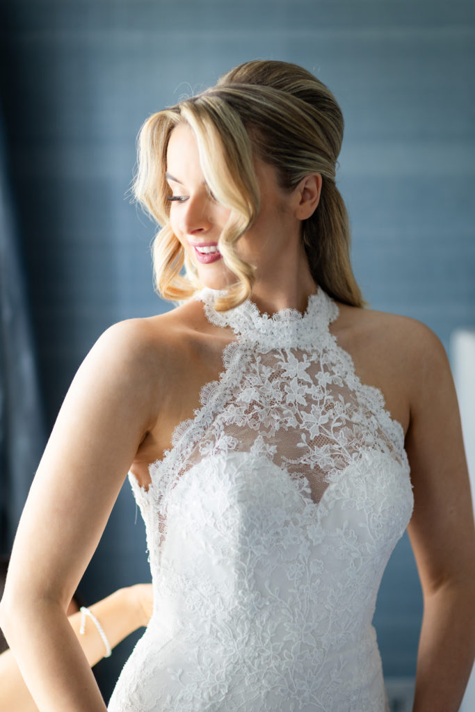 When it came to finding her dress, what Laura thought she would walk down the aisle in it and what she actually chose ended up being completely different! "I never imagined myself in a halter neck, but the girls in Angelo’s were so helpful, and I loved the idea of an overskirt that could be removed for dancing."