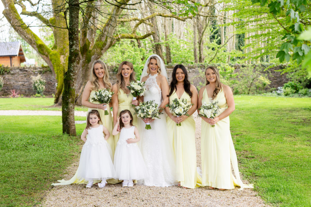 Laura had four of her closest girls by her side on her wedding day. With her sister Emma playing the role of maid of honour, "the best “little” big sister anyone could ever ask for," and her childhood friends Caoimhe, Kerrie, and Laura as her bridesmaids. "We didn’t have a set colour in mind and just wanted dresses that would suit everyone (which isn’t hard for this bunch!). When I spotted the backless lemon dress from Karen Millen, it instantly reminded me of How to Lose a Guy in 10 Days — I had to order it for the girls to try on, and they loved it just as much as I did!"