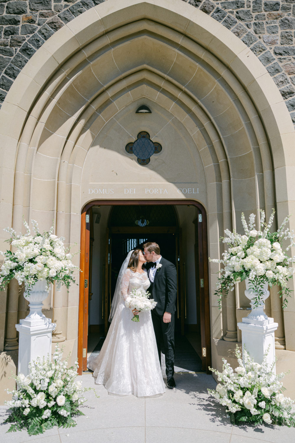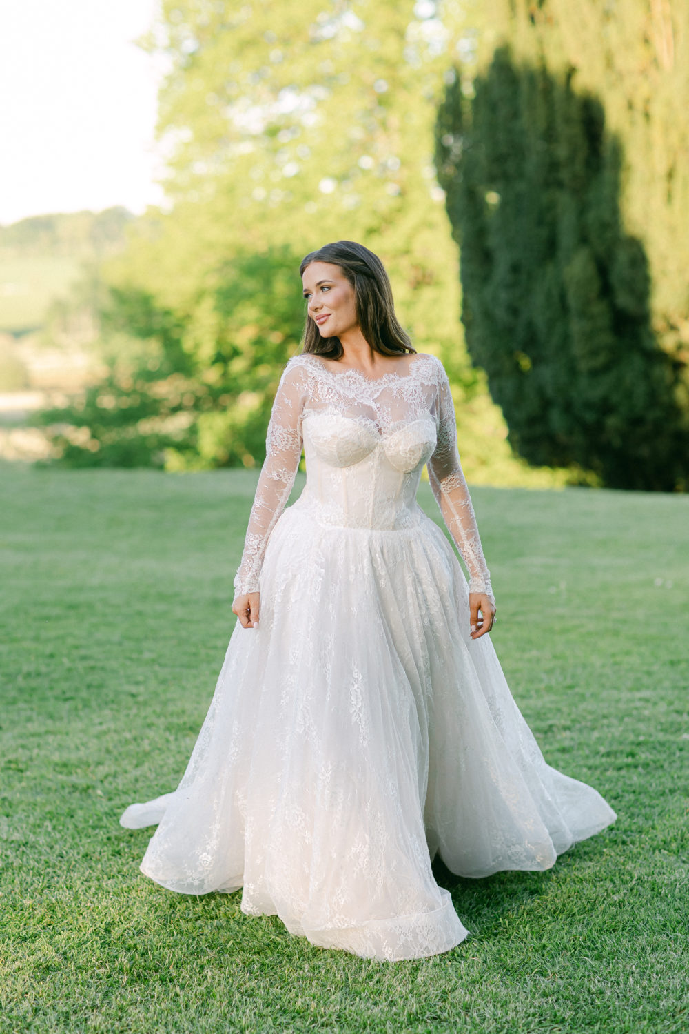 While searching for her dream dress in Australia, Michaela was lucky enough to come across the bridal dress designer, Moira Hughes, and together they designed a traditional lace dress with detachable sleeves for a second look. "With an hourglass shape, I knew I needed support around the bust, so Moira crafted the dress around a French corset that, when worn, moulded to your body. It was honestly the most comfortable thing I've ever worn, and I've never felt more beautiful than when in that dress."