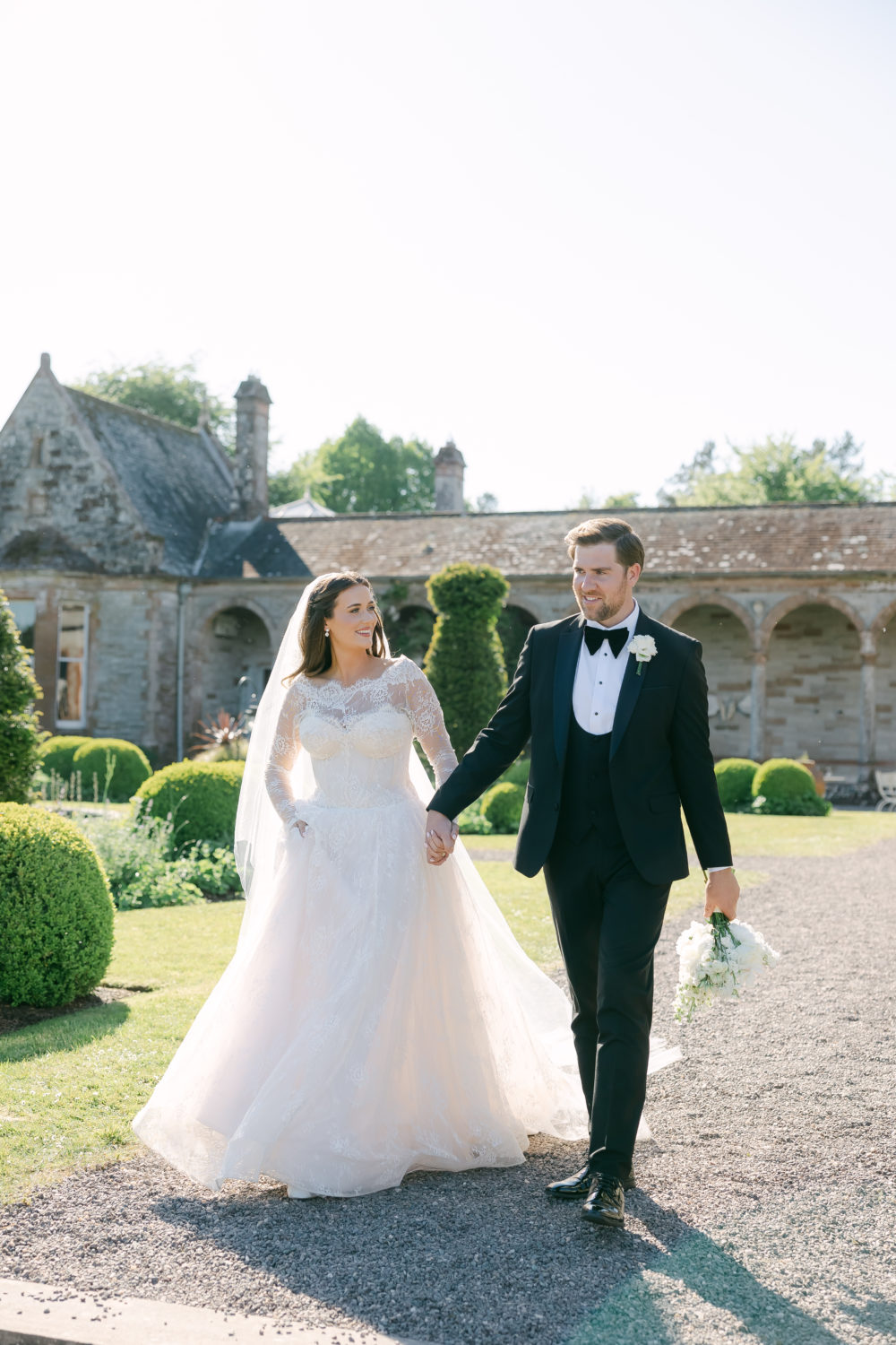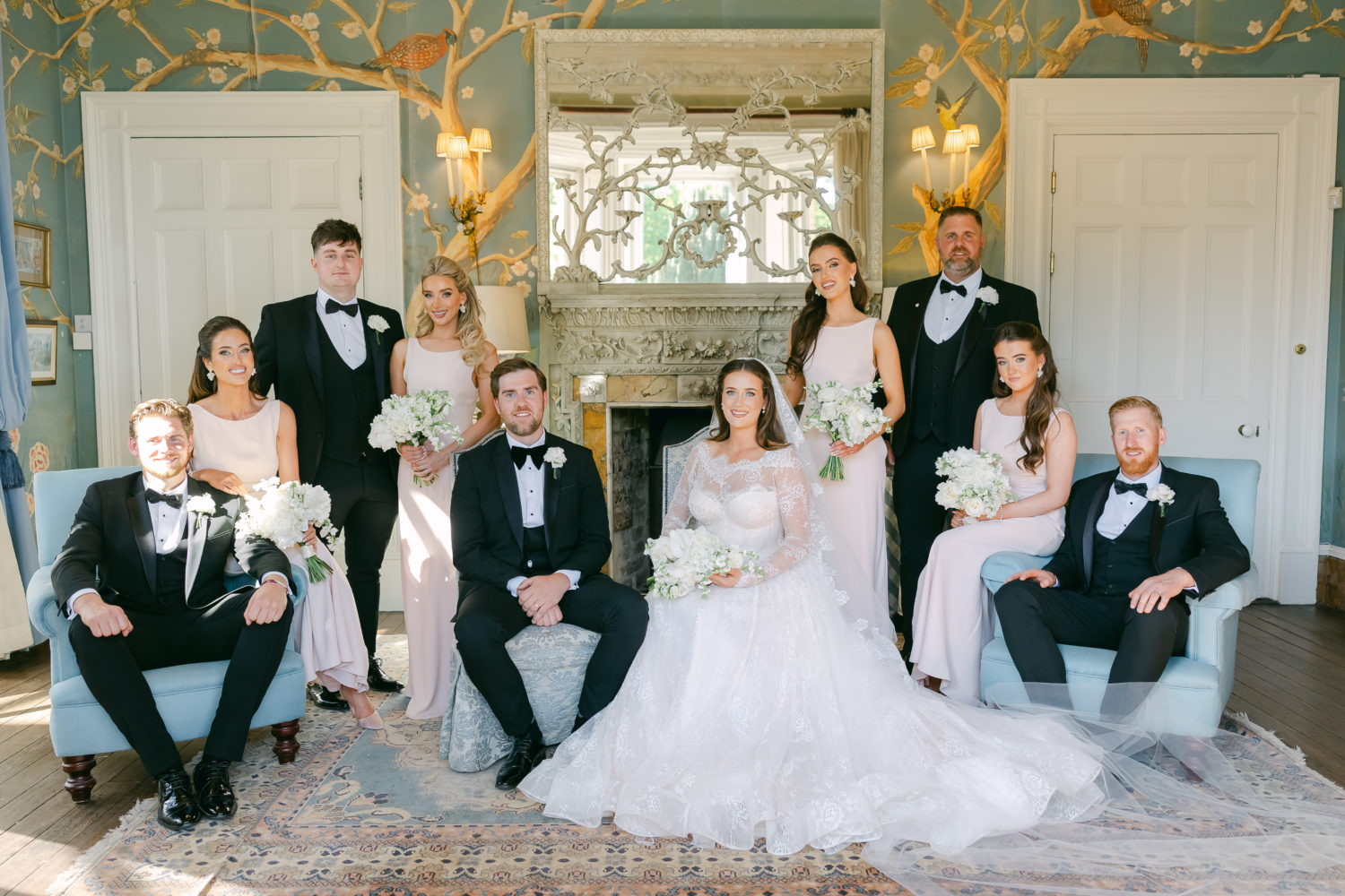 "Donagh went for a black tuxedo. We both agreed that a black tux adds a regal, timeless vibe to any wedding. He looked so handsome; his jacket was a slim fit, and he paired it with a slightly larger dickie bow, which then made the rest of his groomsmen stand out a little bit more. We also had a black-tie dress code for the wedding, and it was one of my favourite elements of the day; our guests all looked incredible."