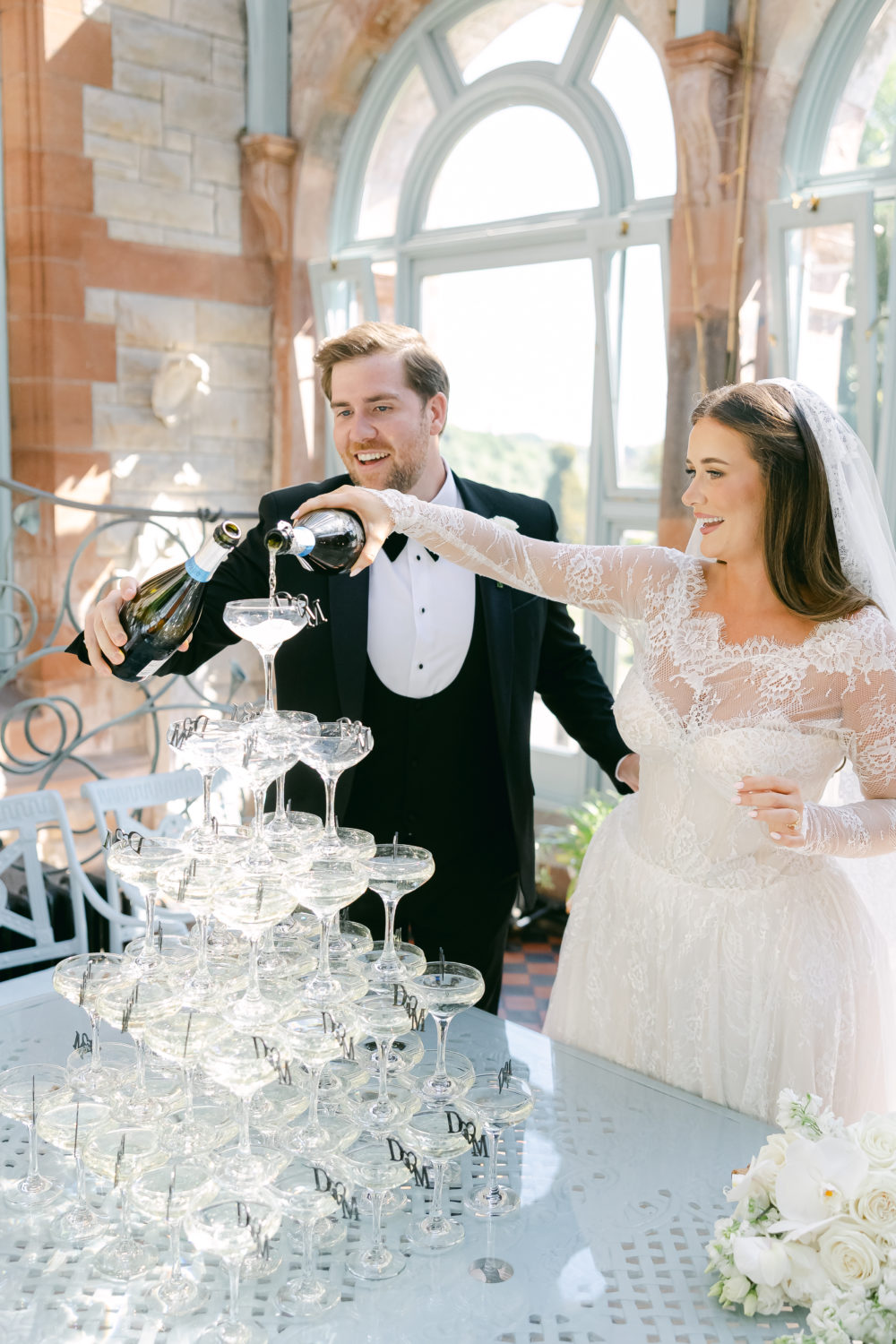 One of the last great Irish Castle estates still in the hands of its founding family, Castle Leslie Estate in County Monaghan, was the romantic venue for the wedding of makeup artist Michaela McDonnell to excavator operator Donagh McGuigan on May 16th 2025. Captured by Peter Carvill Photography and featured in the Winter issue of SOCIAL & PERSONAL Weddings, every detail of this day was absolute perfection, from the champagne tower to Michaela's custom Moira Hughes Couture dress!