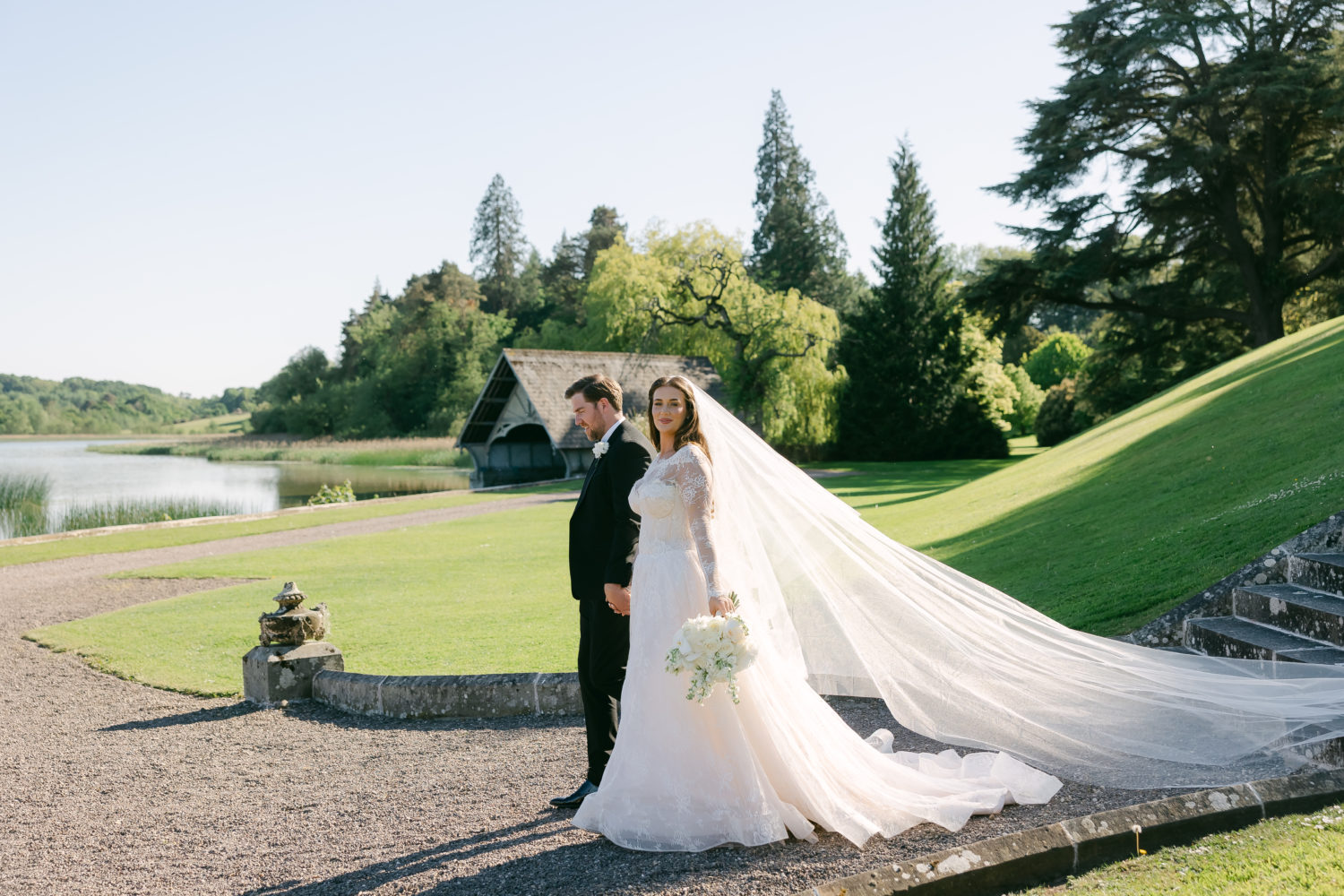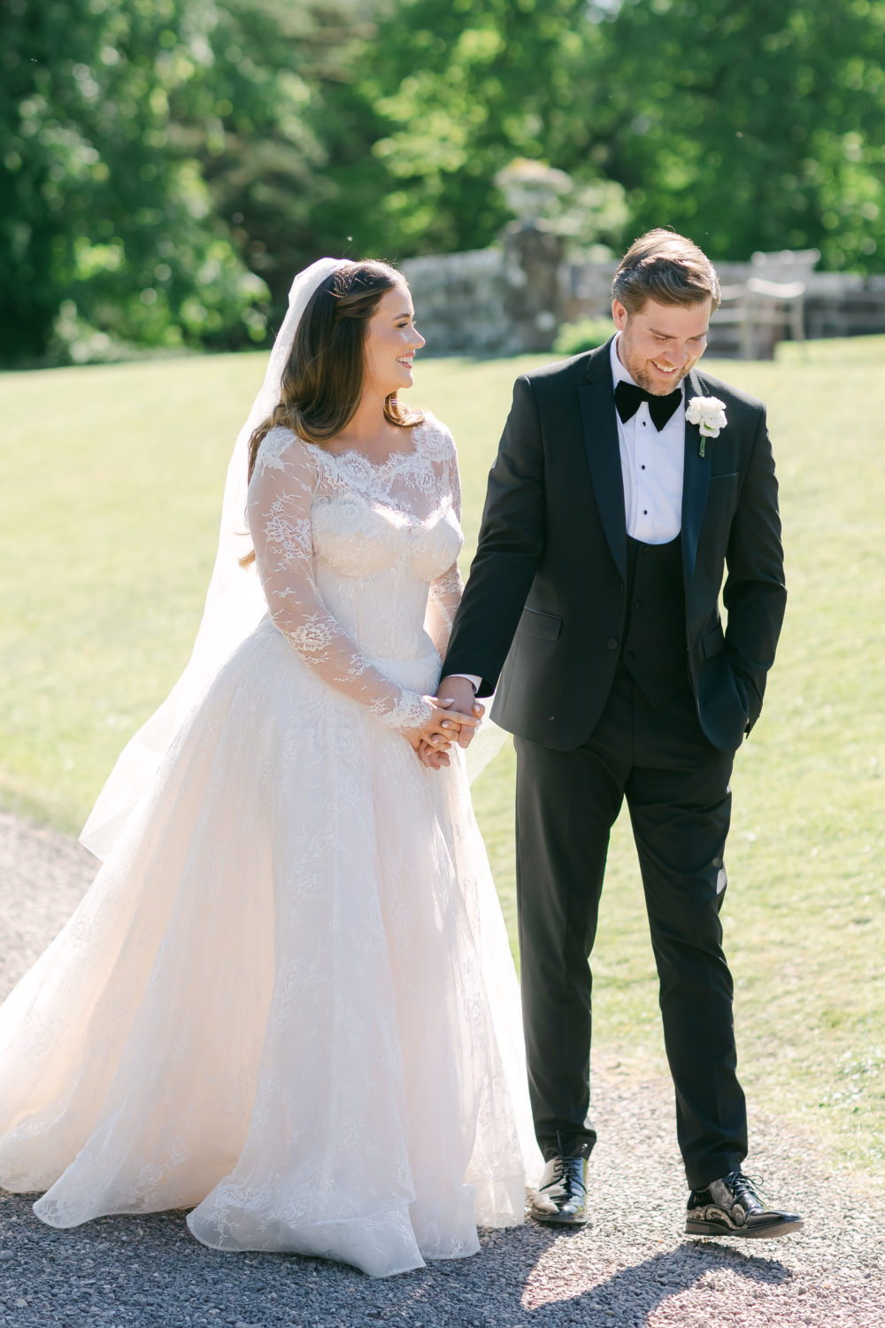 Castle Leslie had been a dream venue for our bride since she was a teenager. "It had everything I wanted: a grand castle exterior, well-maintained rooms that still retain the Castle's original character, a beautiful event room for weddings, and, of course, the setting on the lake. I had enquired at a few places, but once I heard back that Castle Leslie had availability for us in May 2025, we knew it was meant to be." The couple booked the castle before they saw it in person, after a Zoom viewing while still in Australia. The next time the twi came home, they made a stop in Glaslough and were bouncing with excitement, knowing it would be their wedding venue.