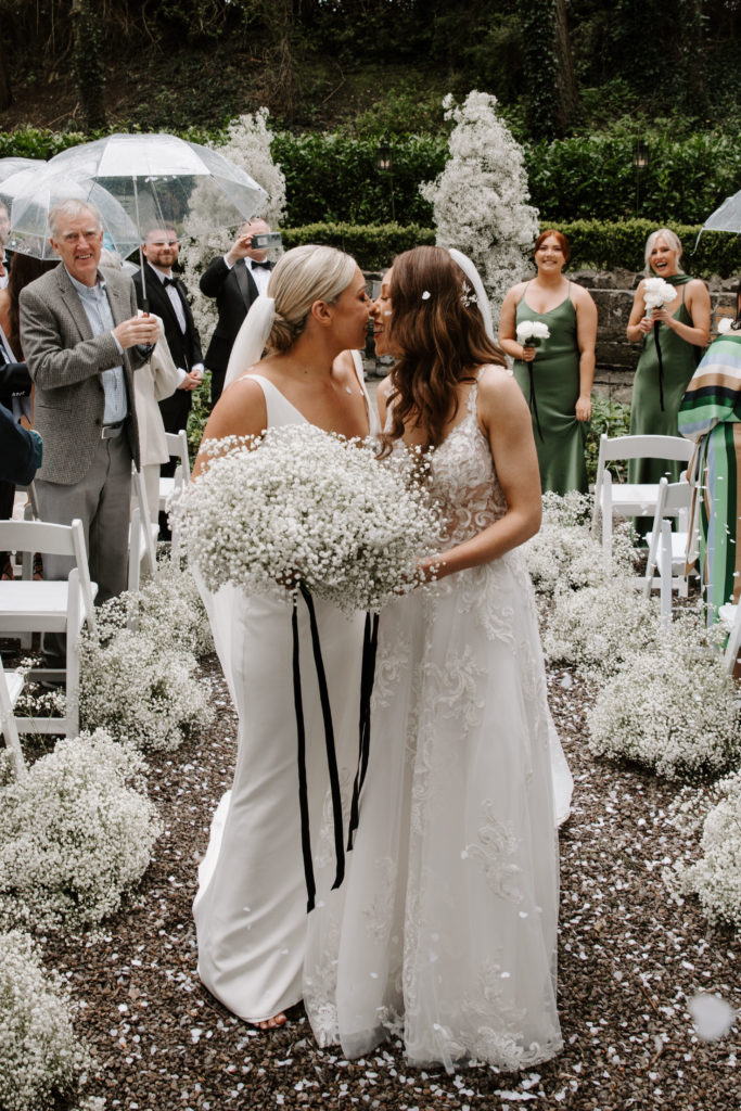 From the beginning of her dress shopping journey, Aoife was certain about the type of dress she wanted, so on a visit to White & Gold, she picked out a handful of gowns in that style and LOVED the third. "Unfortunately, I was too hungover on the morning to make any decisions - it was the morning after Pride and I’d had one or two more than intended - so I went for food and coffee, sat for two hours and then went back to put a deposit down." She knew it was meant to be when her consultant revealed the dress was called 'Archie' (The same name as the couple's labrador)! "Neither of us had seen the other's dress, but we both showed them to our bridesmaid, Shauna, so she could check we hadn’t gone and picked dresses too similar to each other. We were polar opposites in the end."