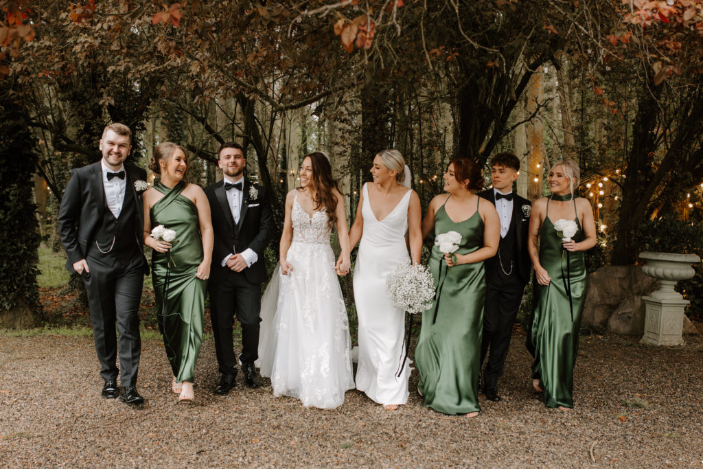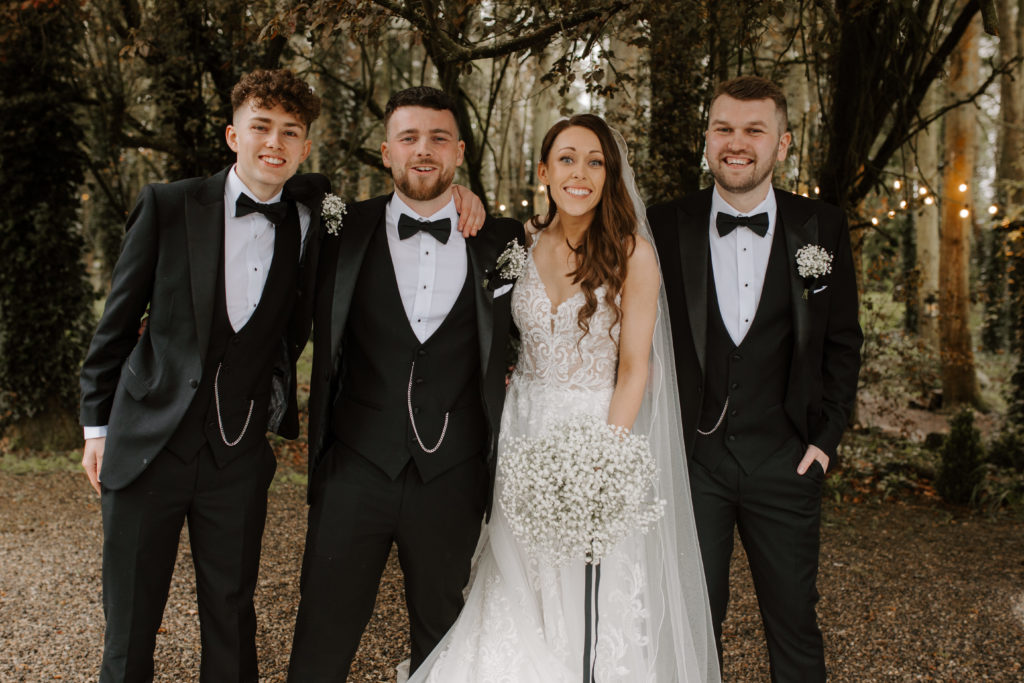 Aoife knew she wanted green dresses for the bridesmaids and found gorgeous Olive Green ones on Rewritten Bridesmaids. They each had a different style in the same colours. The couple had agreed that they wanted the men in fitted tuxedos, so that’s what they went with. To the boys' credit, not one complaint was made about the early Saturday morning fittings! "My side was the Bridesmen (Stephen (Best Man), Adam & Stuart) and Aoife had her Bridesmaids (Fiona (Maid of Honour), Shauna & Karen). Granted, Fiona, Shauna and Karen spent their time in the morning running over and back to check if I needed anything the lads couldn’t assist me with."
