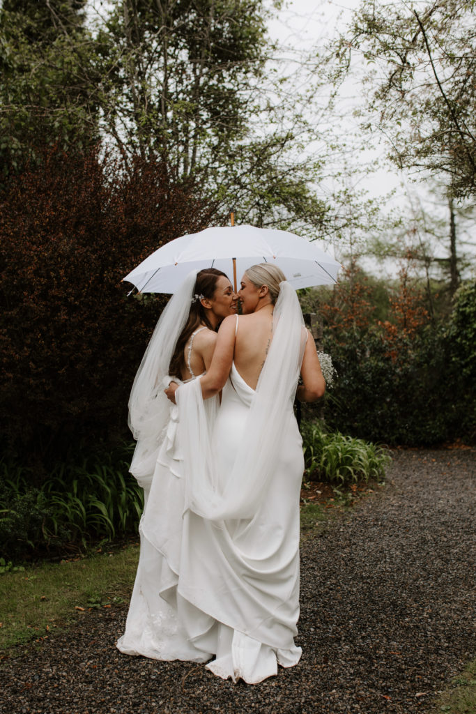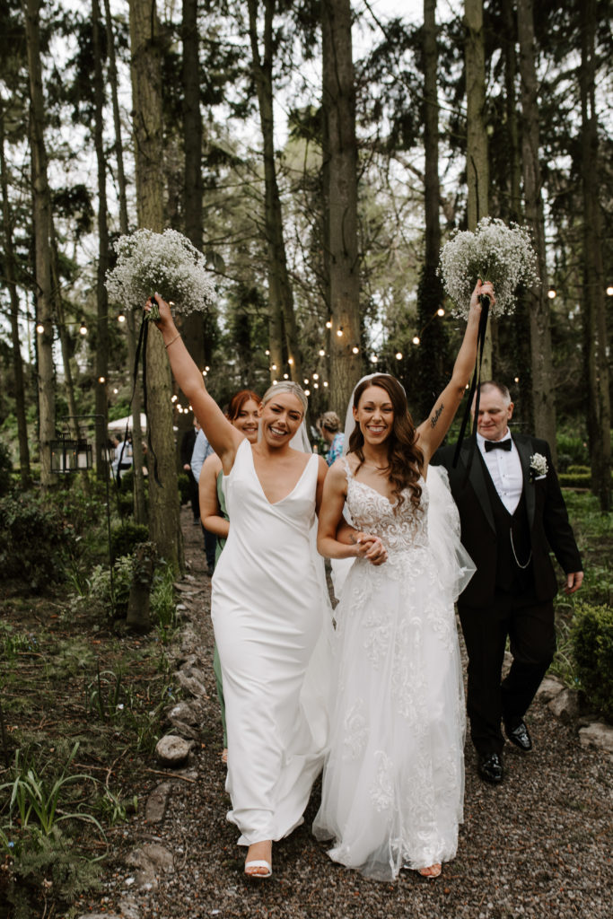 "Our friend Amanda had recommended The Station House after viewing it for her own wedding. It’s not even that far from us, and when we saw it, we couldn’t believe we hadn’t come across the venue ourselves. We fell in love immediately, and nothing seemed like too big a task for Caroline and the team." One sticking point for Aoife and Nicola was the need for two separate bridal areas so they could get ready on site but not risk crossing paths before they met at the altar. While not a typical request, the team at the Station House made it work, and the girls were able to get glammed in separate spaces. "The outdoor area for the ceremony was what sold it to us. The forest path walk up to The Turntable is stunning. We always knew we wanted to get married outside, rain, hail or snow. We love to be outdoors, whether it’s hiking, wild camping, or just exploring, so having the ceremony outside just fits. It actually started to drizzle for a couple of minutes during the ceremony, and umbrellas were brought out for everyone."