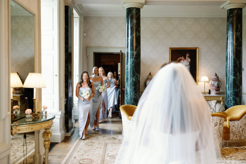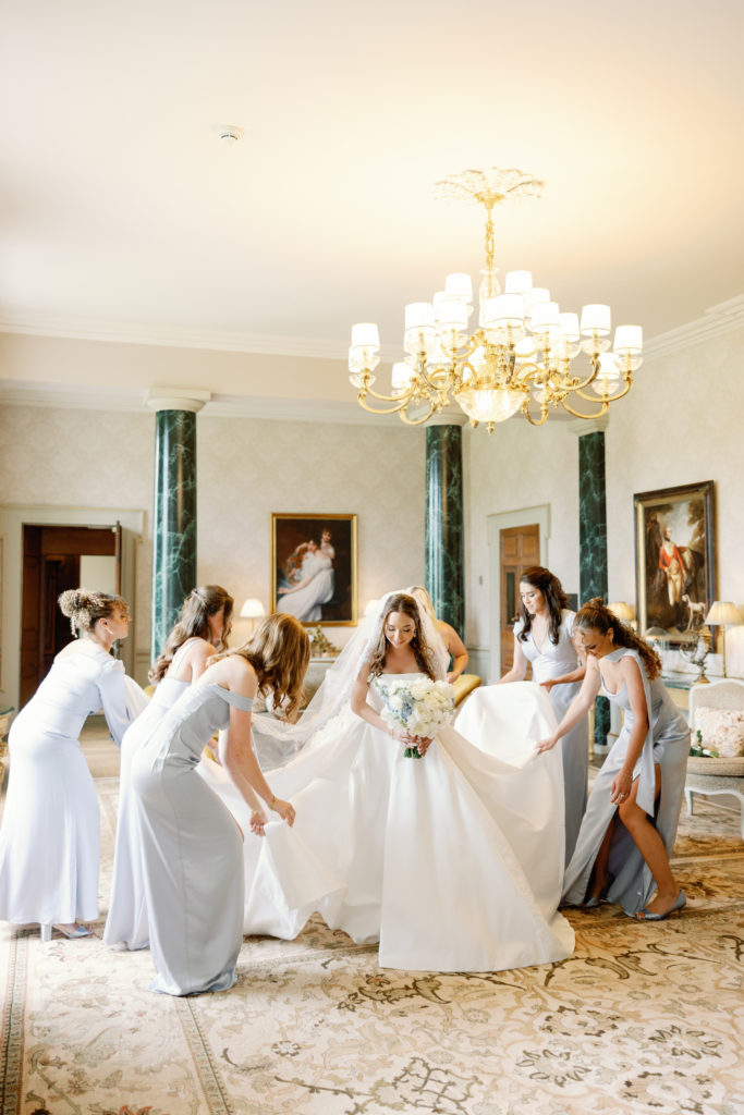 The couple knew that they wanted to get married in Ireland, so after plenty of research, they took a road trip around the country in search of their venue. "When we arrived at Carton House in Maynooth, we instantly knew it was the one." One of the huge appeals of the venue was its proximity to Dublin, since about one hundred of the wedding guests were travelling from outside of Ireland, mostly from the U.S. "Beyond that, the estate’s history, stunning grounds, and timeless charm made it feel like the perfect place to celebrate our story coming full circle."