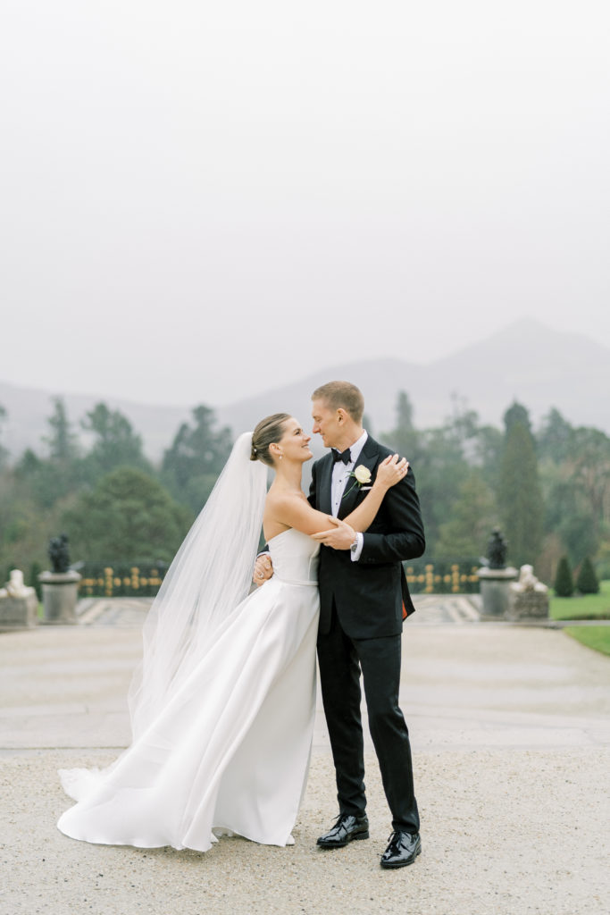"I had always imagined getting ready in my family home; everyone bustling around the kitchen while I put on my dress in my childhood room. With that in mind, there were a few beautiful venues around Dublin to choose from, but honestly, the decision was easy. I had always loved Powerscourt. Growing up, I spent so much time there, visiting Santa’s Grotto, picking out Christmas decorations from the Garden Centre, and wrapping up warm to see the Powerscourt waterfall before heading to the Avoca café for soup and brown bread. It had always felt magical, so having our wedding there on New Year’s Eve just felt right."