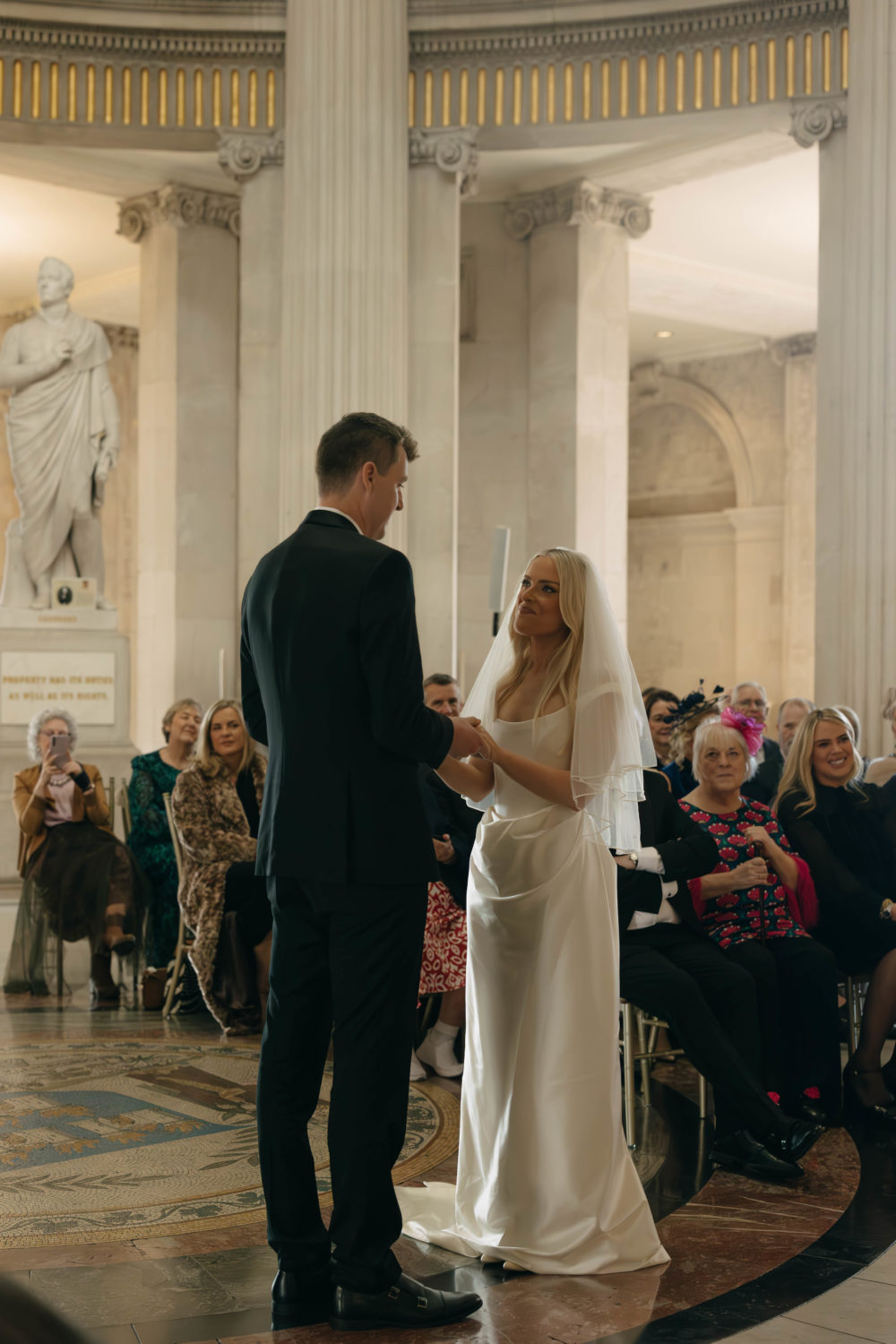 Sadhbh has always loved City Hall. "I’ve always appreciated architecture, and City Hall is such a beautiful and historic building that it instantly creates an incredible atmosphere. It was also very important to both of us that we got married in Dublin rather than London. Even though we live in London now, Dublin is where we’re both from and where we first met, so it felt really meaningful to celebrate such an important moment there." As neither of them are religious, they knew they wanted a civil ceremony, and City Hall felt like the perfect setting. "We then went on to 25 Fitzwilliam Place. I actually viewed only one venue, 25 Fitzwilliam Place. We had wanted somewhere in the centre of Dublin. I love Georgian architecture, and even before seeing it in person, I knew it was right. Darragh, the weddings and events manager, was incredible from start to finish and took all the worry and hassle out of the day."
