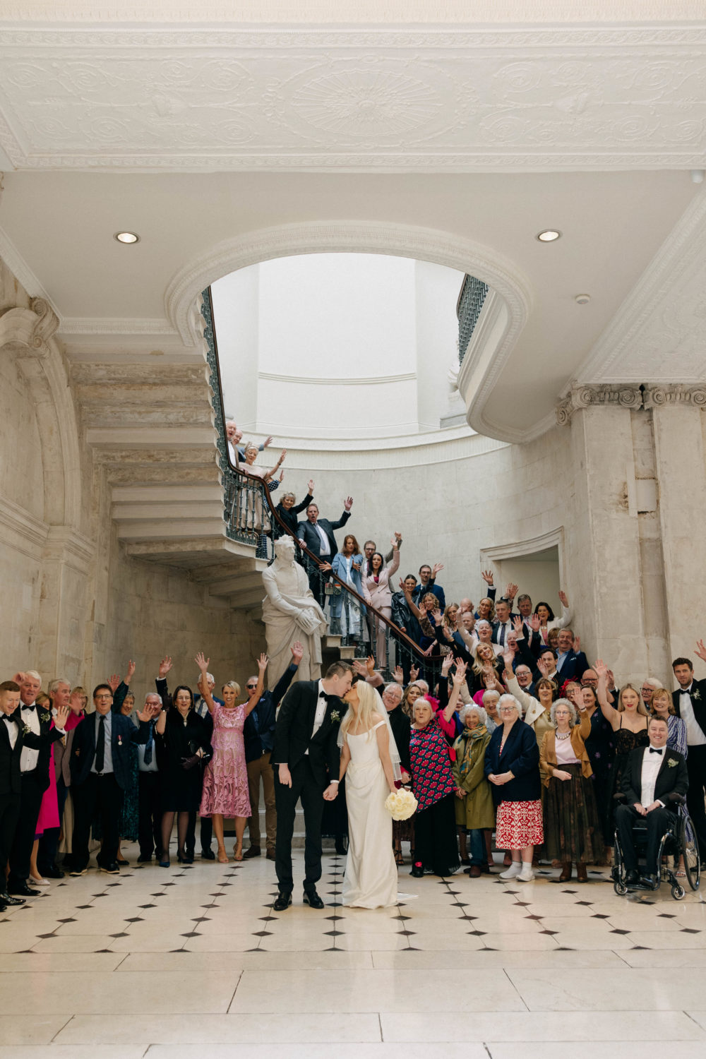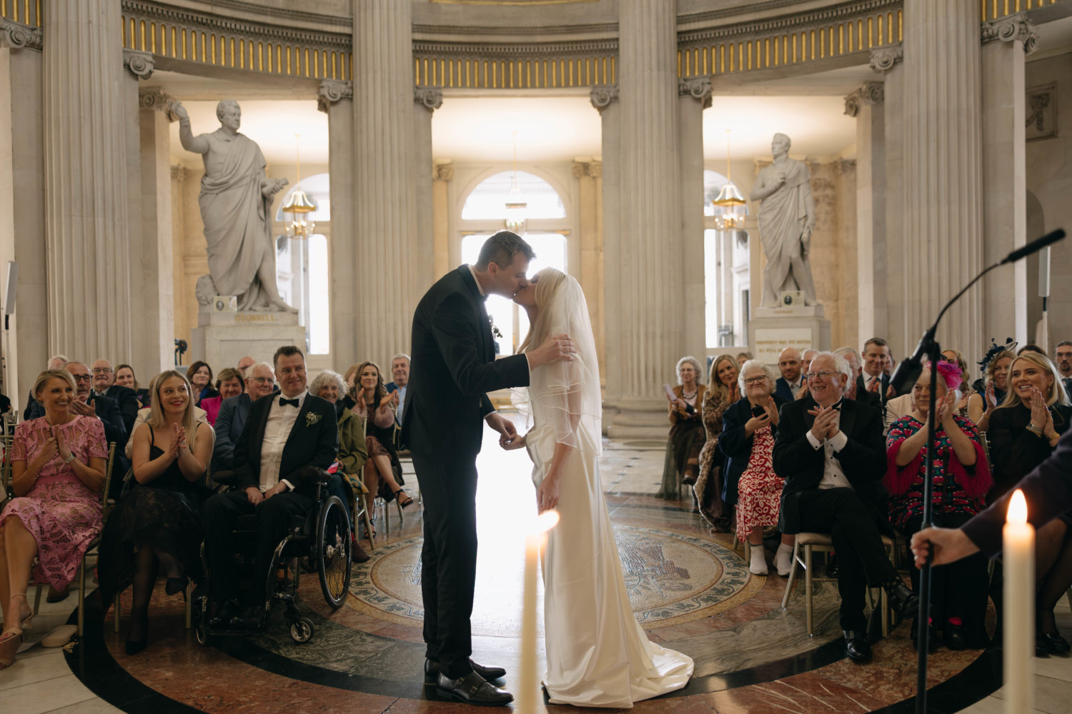 Originally the Royal Exchange, Dublin City Hall has been an institution of the city since 1779. The spacious Rotunda room and its exquisitely ornate domed ceiling made the perfect venue for the wedding of marketing director, Sadhbh Wilson Garvey, to former professional tennis player and founder of Give Learn, James Cluskey, with a reception at 25 Fitzwilliam Place on the 6th of March 2025. Captured by Anouska Love Story, it was the kind of day that just felt easy, full of meaning, and very them from start to finish.