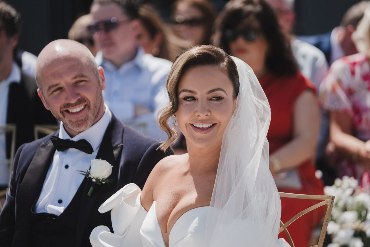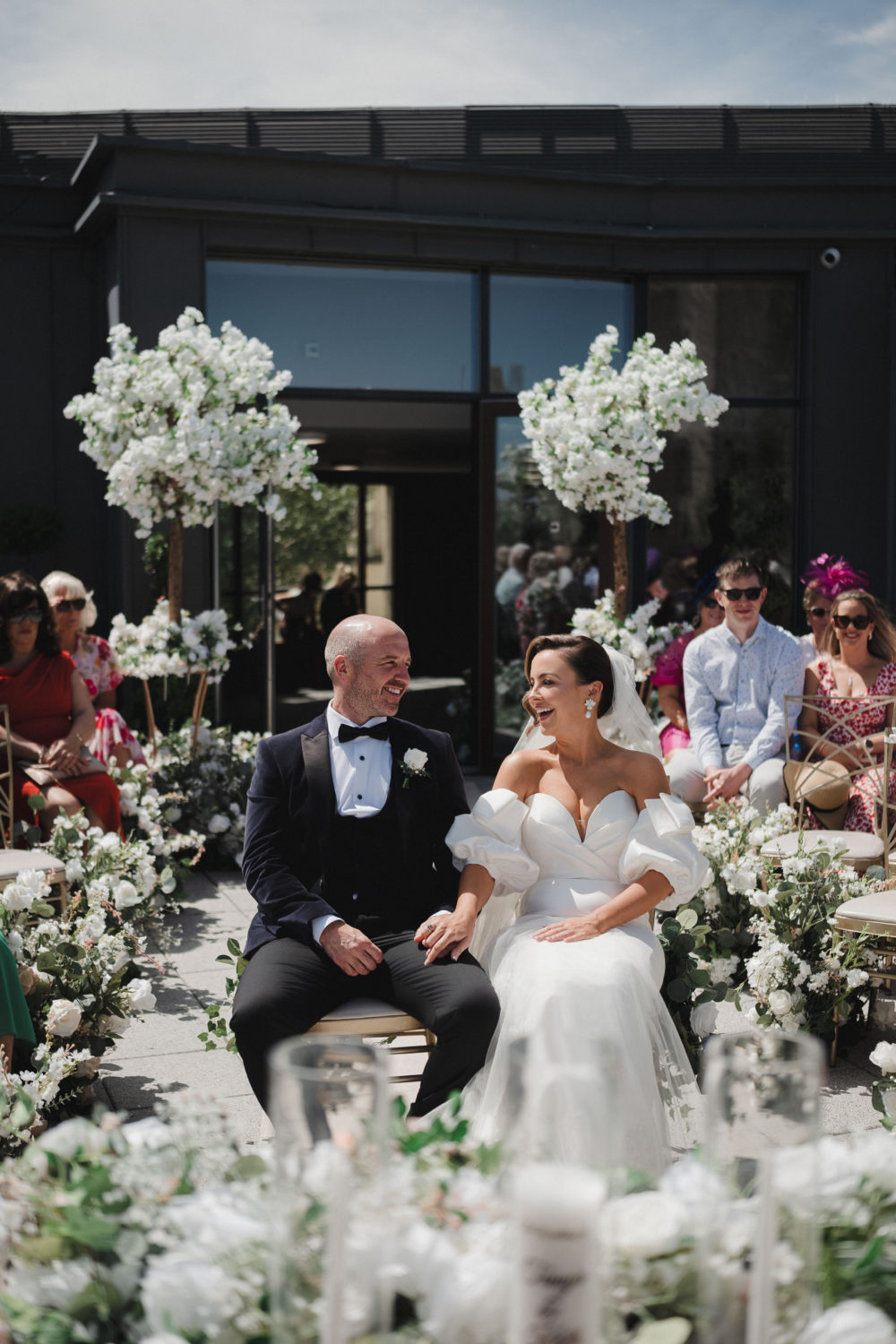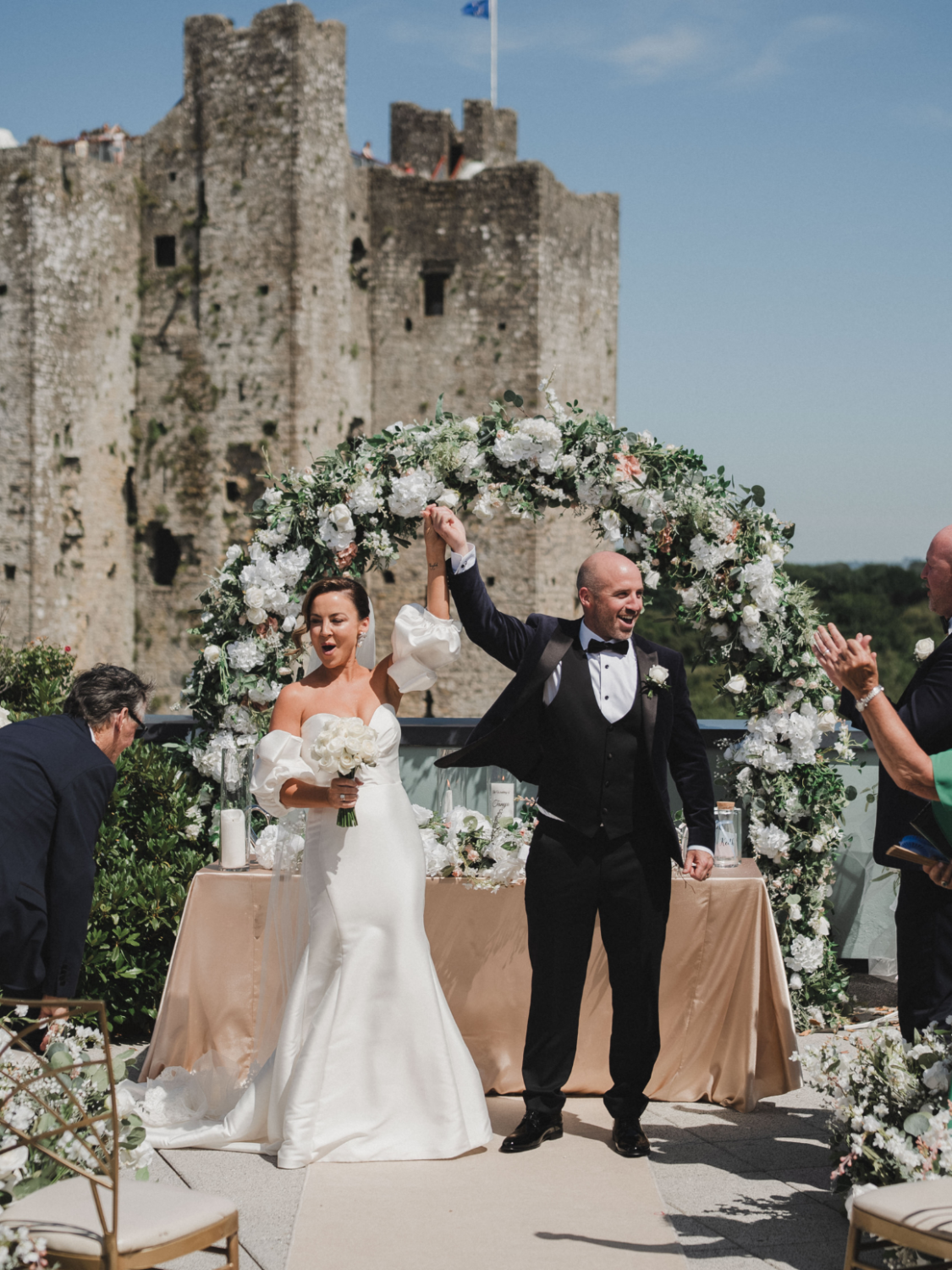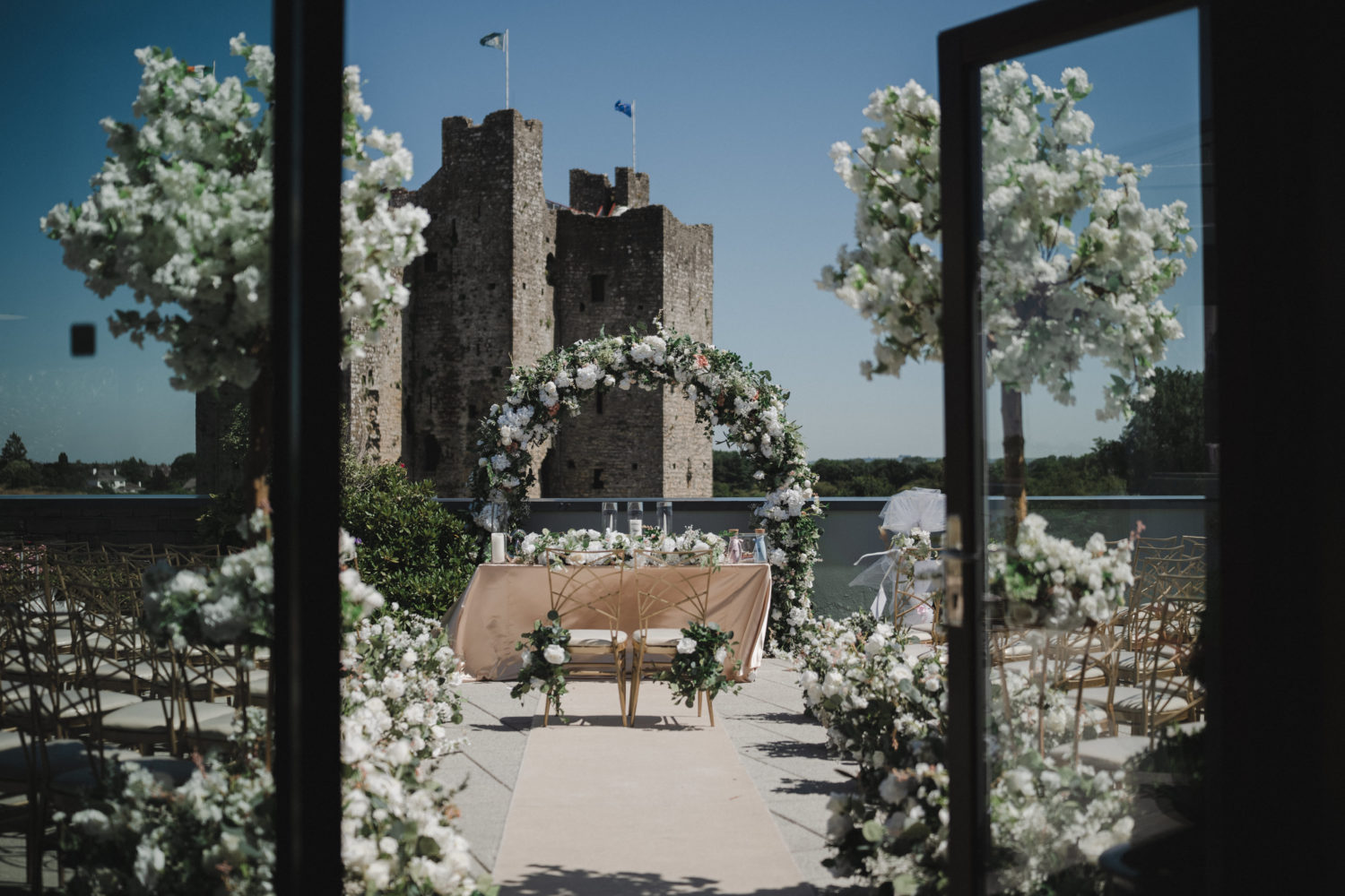 "The only words to describe our ceremony are 'pure magic'! Trim Castle Hotel has a stunning rooftop area overlooking the castle itself, so we were keeping fingers and toes crossed that we could have the ceremony up there if it was a nice day. I was checking the weather forecast every day for 3 weeks beforehand, and it was expecting rain. About a week before, the forecast changed, and we had one of the hottest days in Ireland this year. 360 degrees of pure blue skies. We were blessed with the weather. Looking back at our ceremony photos, you’d swear we were in Spain or Greece. My favourite part of our ceremony was our vows. We chose to incorporate personal vows along with traditional ones. To hear your partner speak from the heart in front of all your loved ones was such an emotional experience. As overwhelming as it can be, I would recommend personal vows to everyone!"