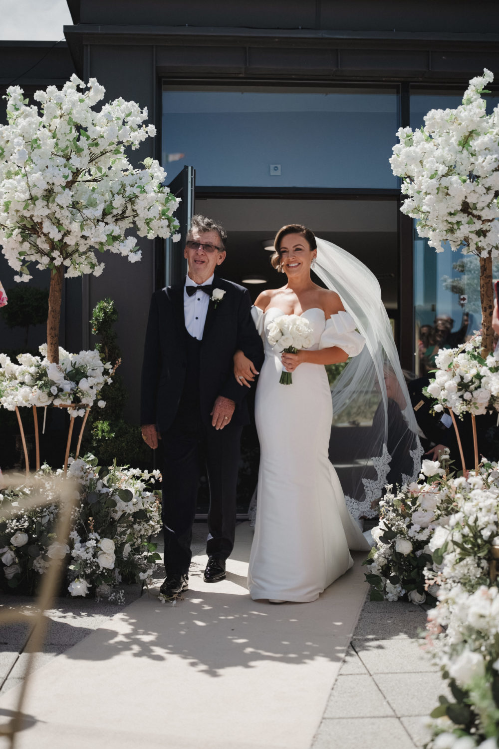 Overlooking its namesake on the banks of the River Boyne, Trim Castle Hotel boasts a magnificent open-air rooftop garden terrace that acted as the stunning venue for the wedding of Tanya Cunningham and Keith McIvor on the 13th of July 2025. Photographed by Kevin Curry Photography, their romantic, unseasonably sunny ceremony set the tone for a day filled with laughter, music, and heartfelt moments.