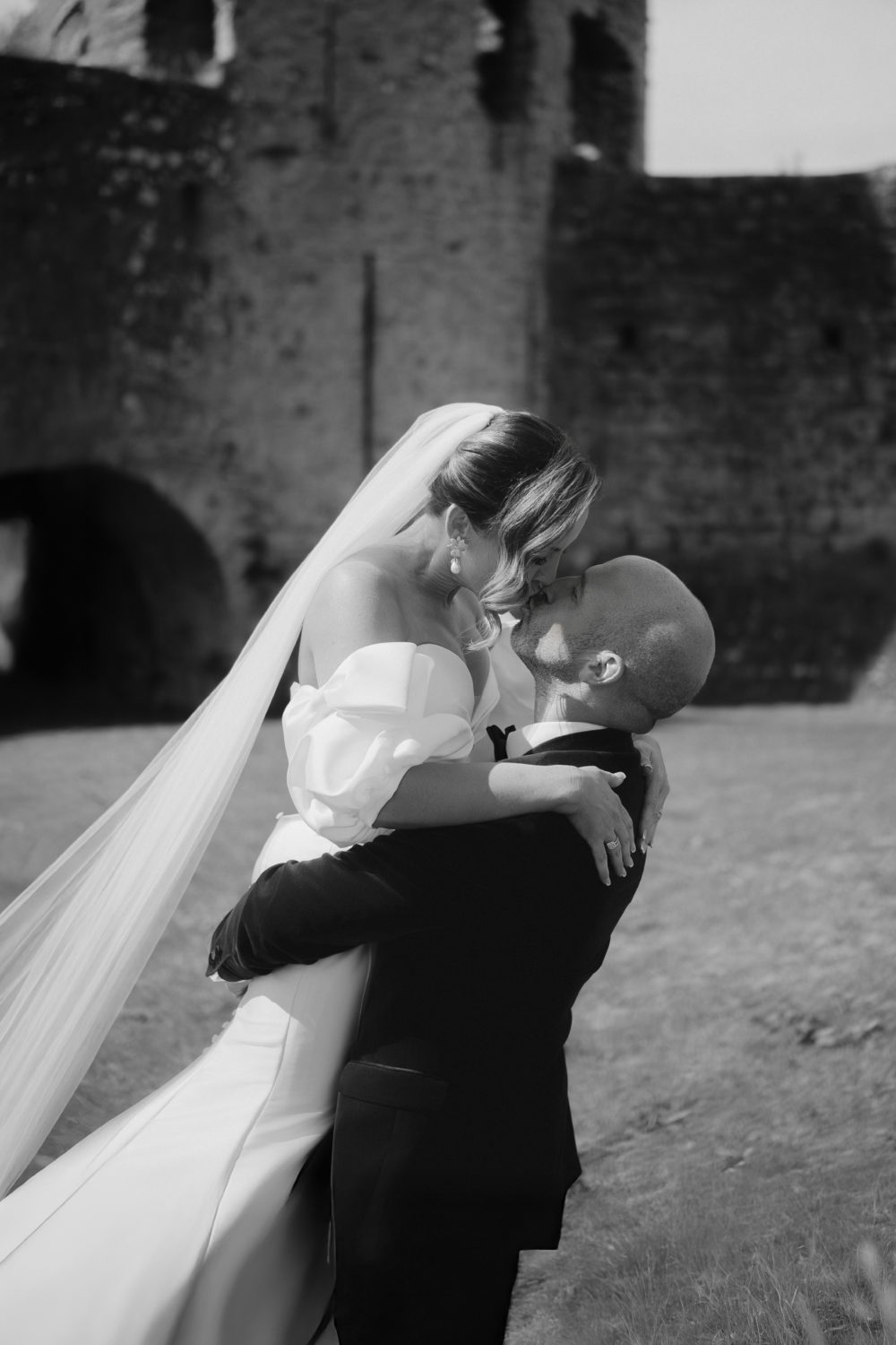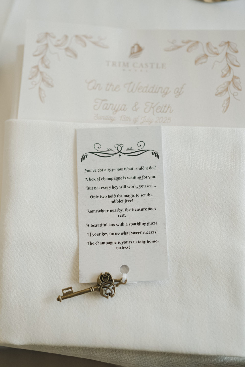 After Keith and Tanya got engaged in 2019, they started looking at a few venues, but when Covid hit, everything was put on hold. So 5 years later, the pair decided to start looking again. "I found an online advertisement for a wedding fair at Trim Castle hotel and Keith, and I decided to go over and have a look. To be honest, we thought the venue was really lovely, but seeing the castle view from the rooftop for the ceremony sealed the deal." The two loved the ceremony most; the view of Trim Castle as they exchanged vows was an absolute dream!