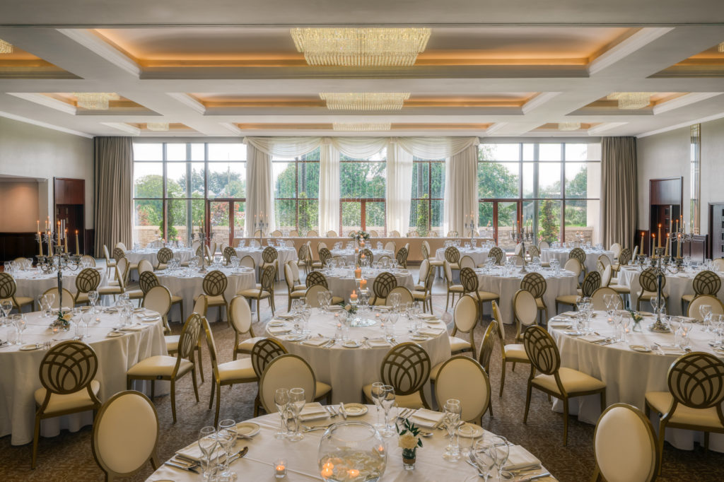 The Grand Ballroom is the jewel of the hotel, combining timeless sophistication with modern luxury. With its double-height ceilings, sparkling chandeliers, and expansive windows framing stunning views of the castle, it provides the perfect backdrop for both intimate gatherings and grand celebrations.
